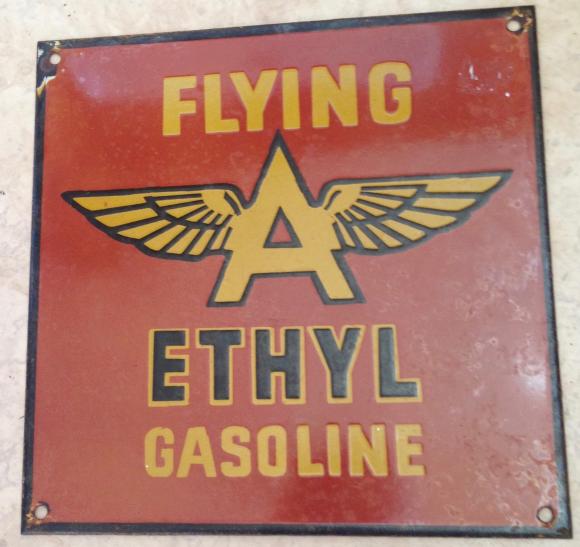 Early Small Enamel Sign Flying a Ethyl Gasoline
