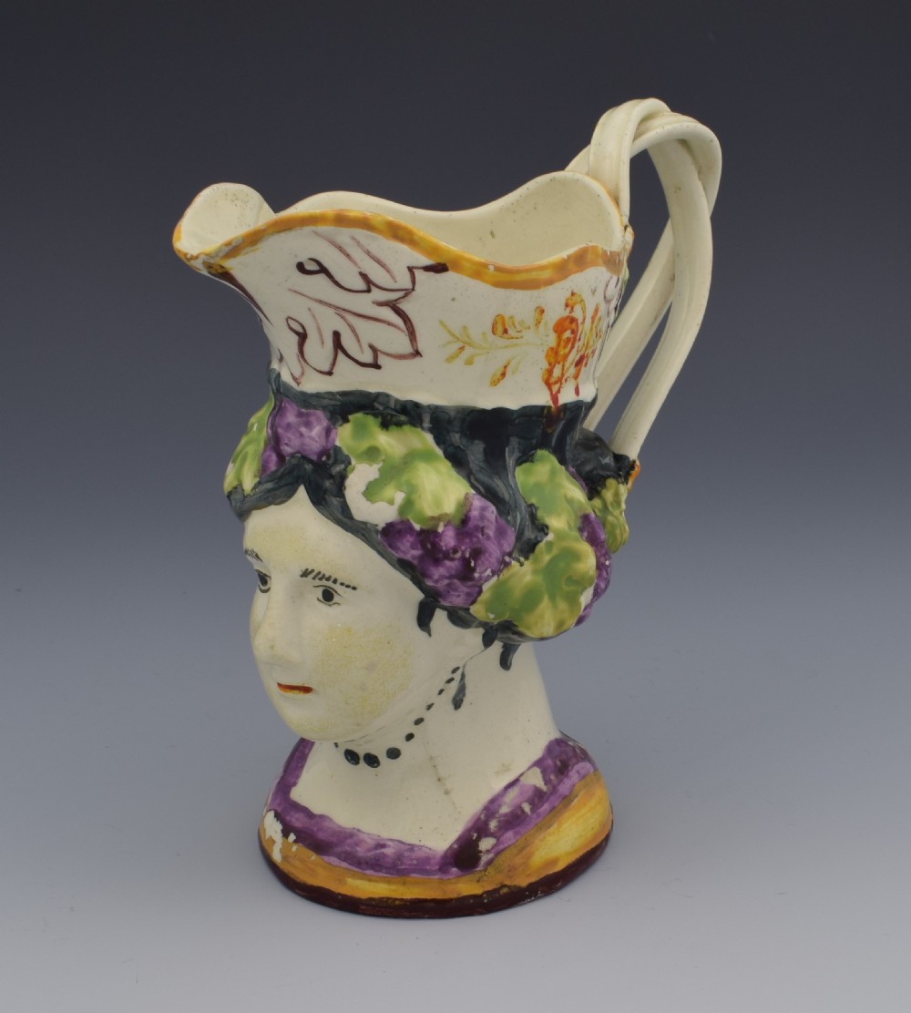 Early Staffordshire Pottery Princess Charlotte Mask Jug C.1817 Creamware
