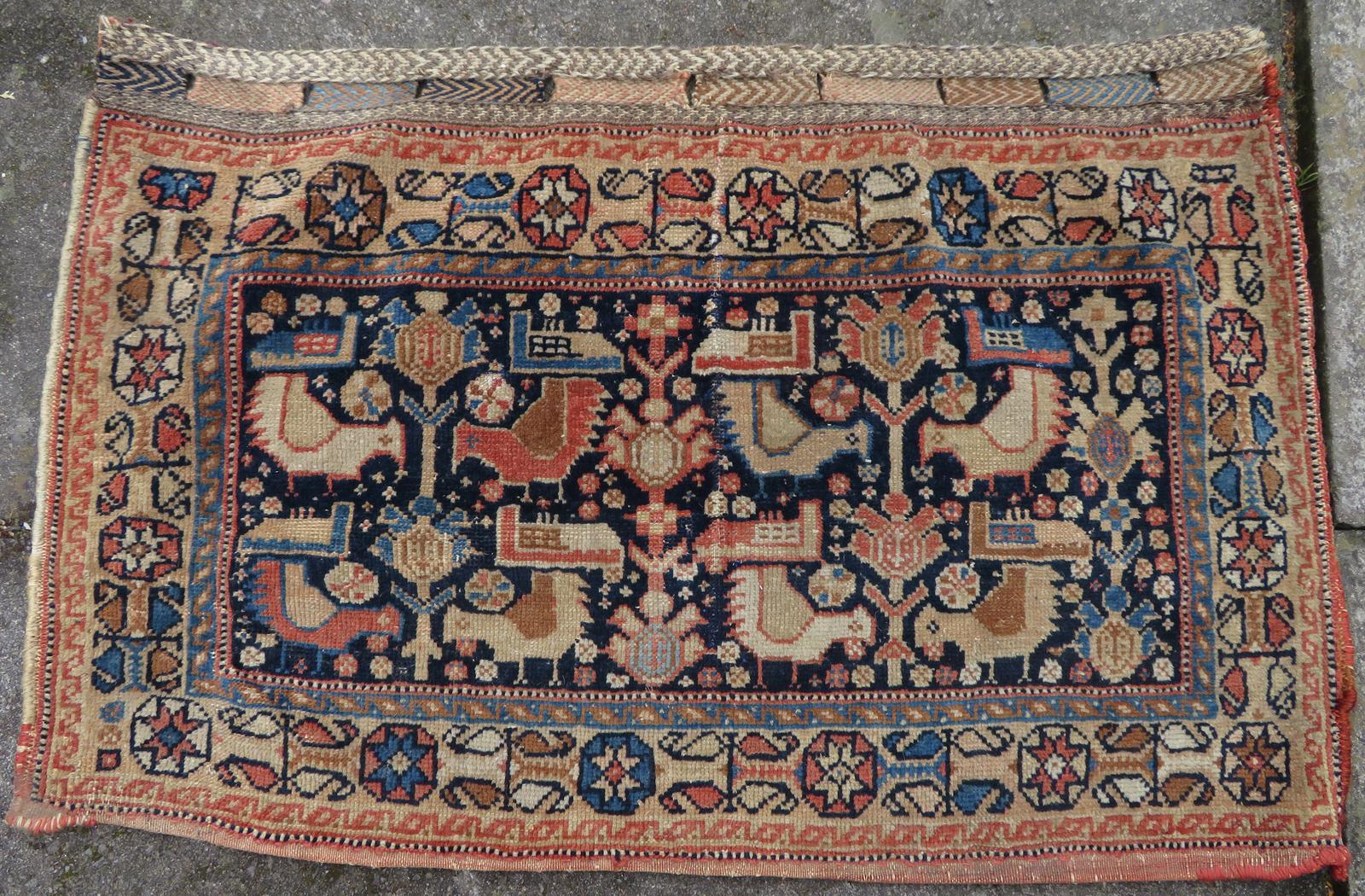 Early Tribal Khamseh Bag Face - Khorjin Saddle Bag Face Rug - 19th Century