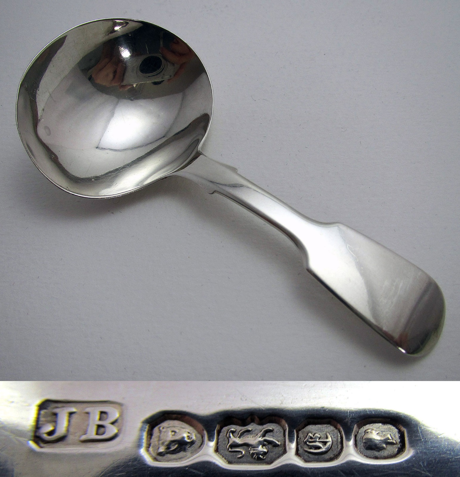 Early Victorian 1840 Antique Solid Sterling Silver English Plain Tea Caddy Spoon. James Beebe