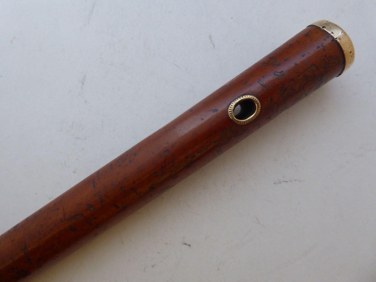Early Victorian 1840's Walking Stick Cane Gold Plated Pommel Malacca Wood Shaft