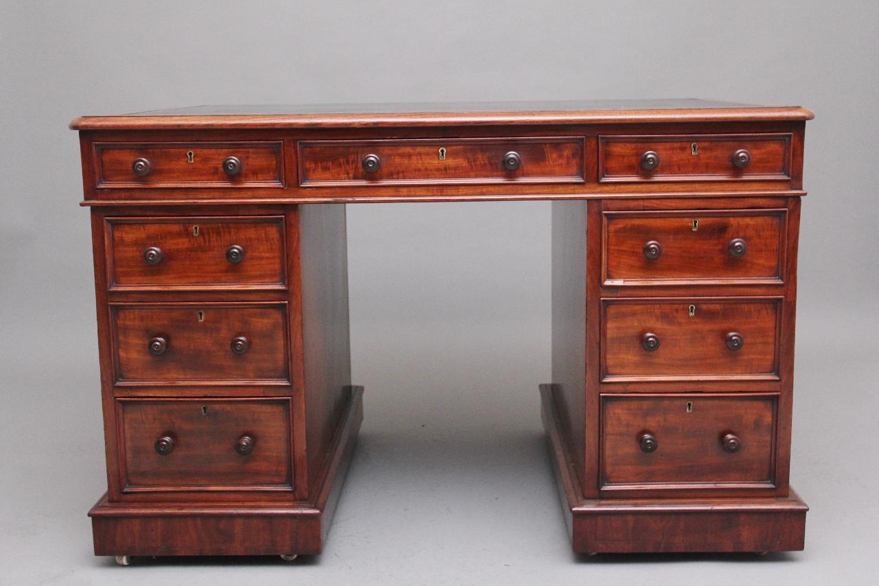 Early Victorian 19th Century Mahogany Pedestal Desk (1 of 11)