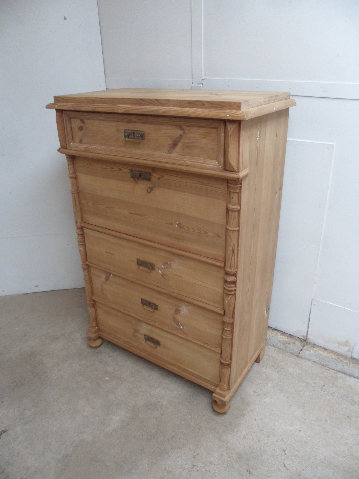 Early Victorian Antique Pine Secretaire / Desk to wax / paint