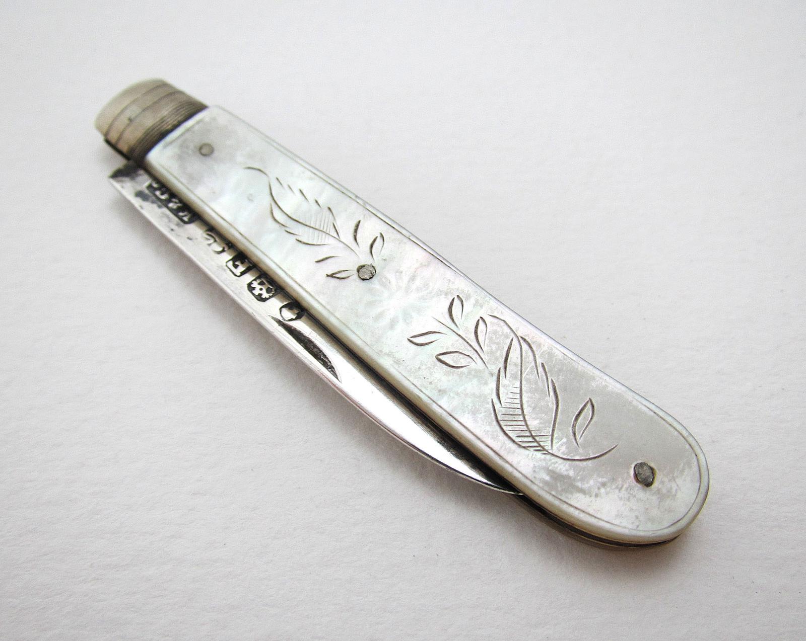 Early Victorian Antique Sterling Silver & Mother of Pearl Small Folding Fruit Knife / Penknife - Sheffield 1849 (1 of 7)