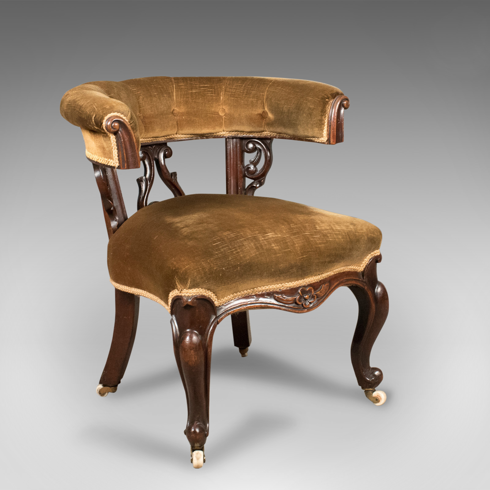 Early Victorian Bow Back Armchair, English Walnut Reading Chair c.1840