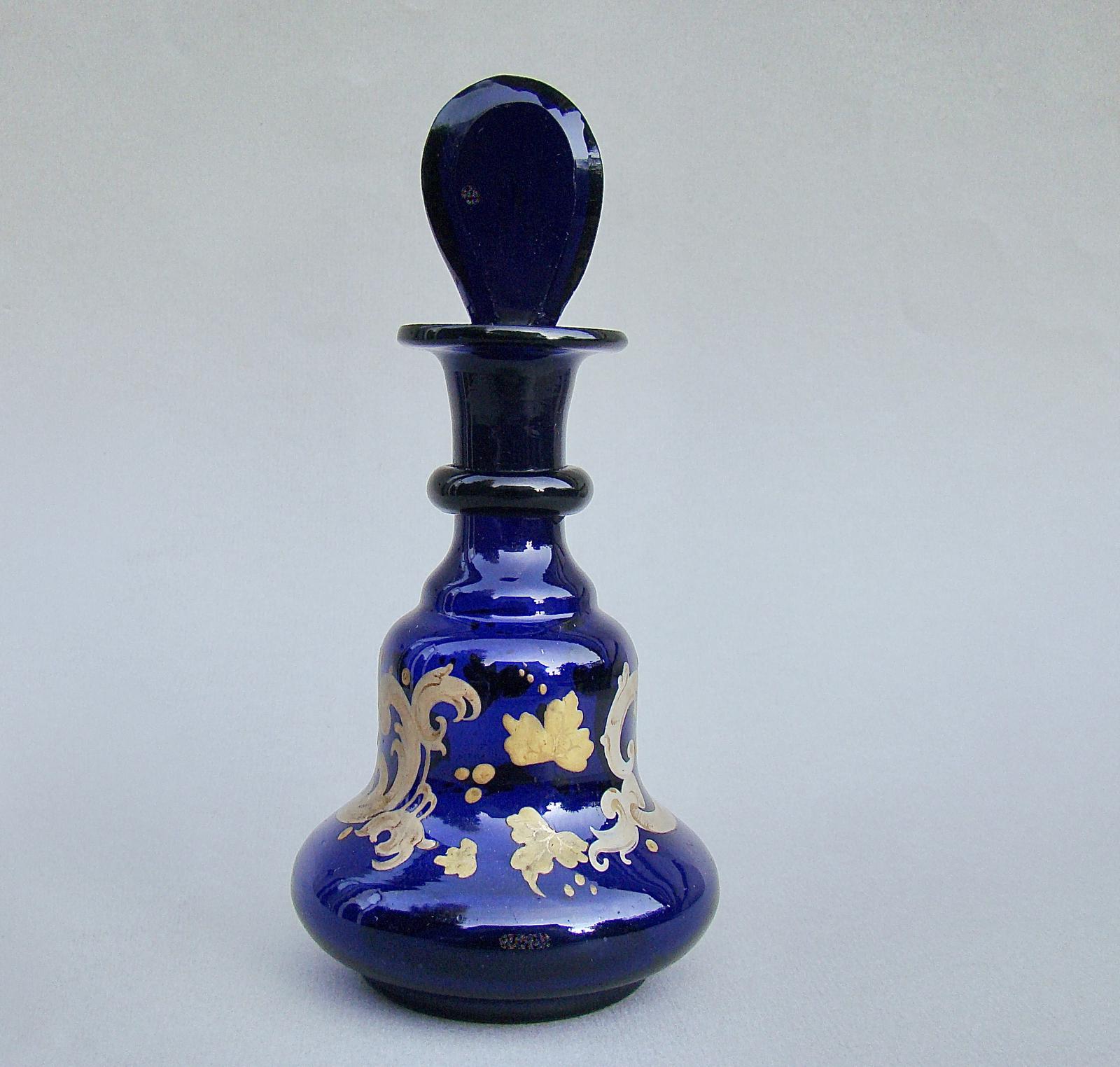 Early Victorian Bristol Blue & Gilt Glass Scent Bottle c.1860