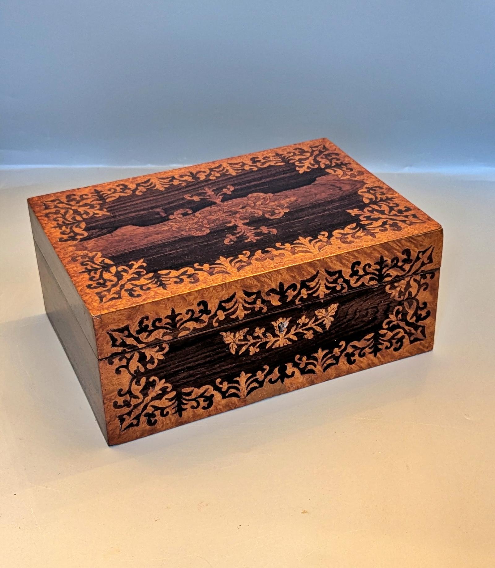 Early Victorian Burr Maple Marquetry Inlaid Jewellery Box