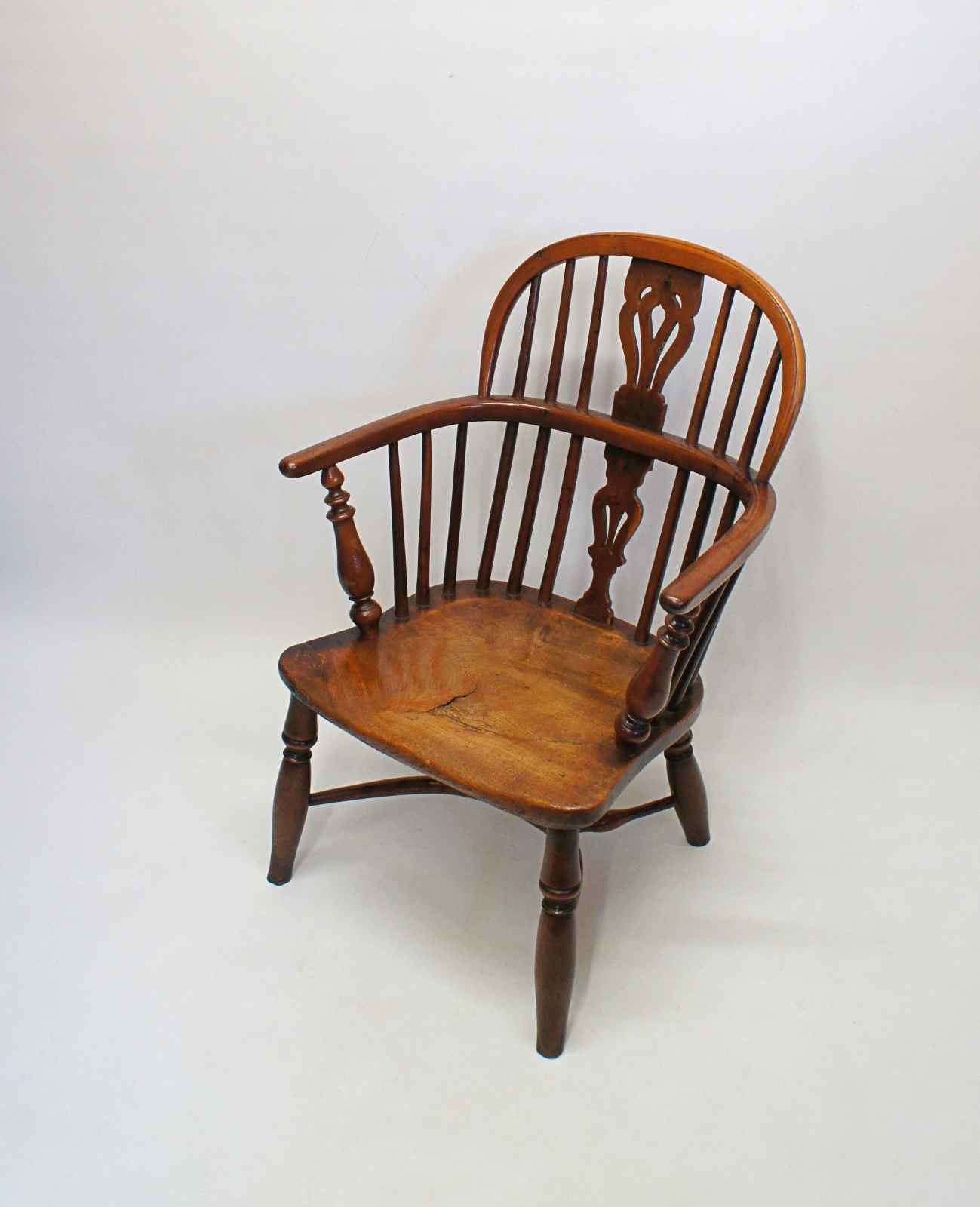 Early Victorian Childs Low Back Windsor Armchair in Yew Wood & Elm