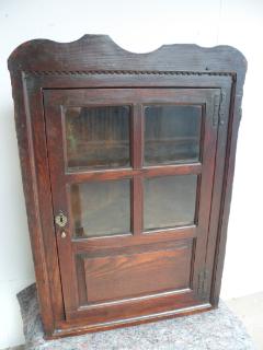 Early Victorian Country Elm & Oak Wall Hanging Corner Cabinet