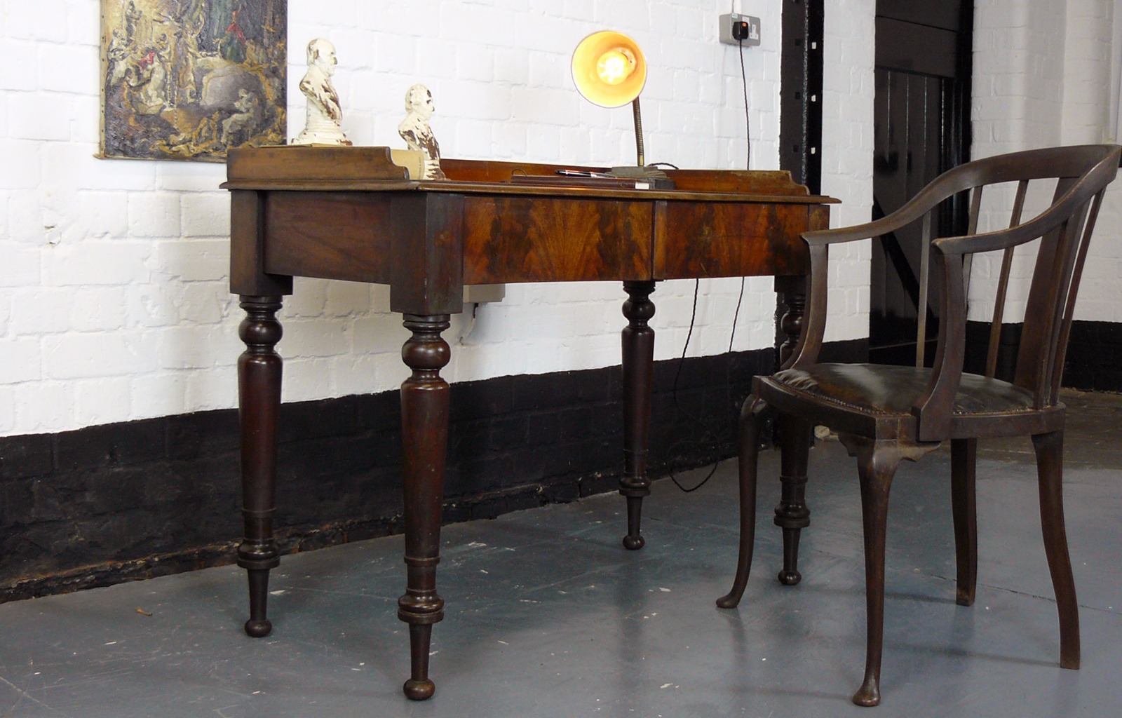 Early Victorian Mahogany 2 Drawer Desk / Side Table in Original Untouched Condition (1 of 1)