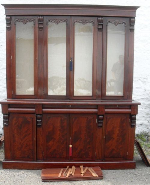 Early Victorian Mahogany 4 Door Bookcase on Cupboard & Drawer Base