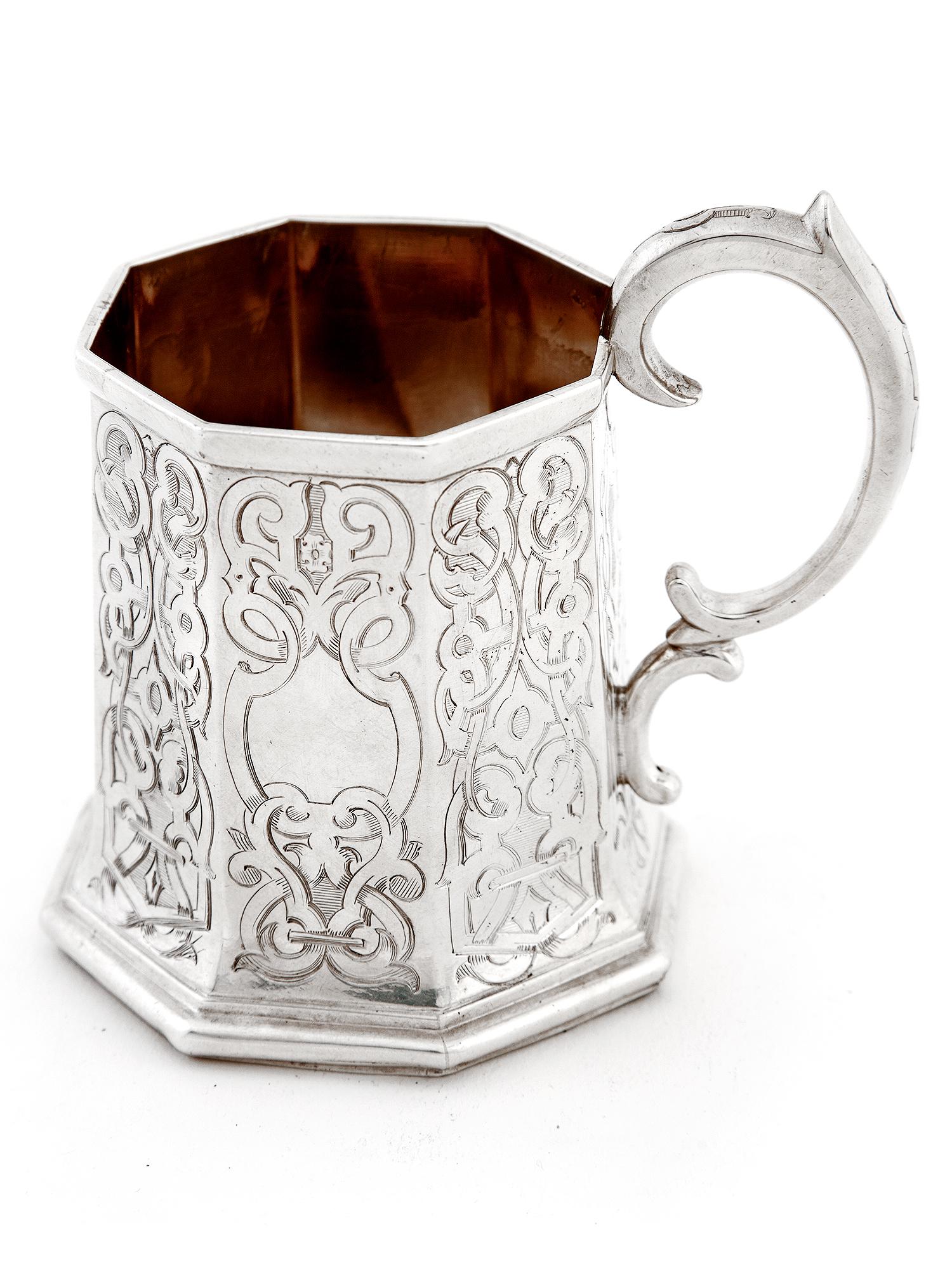 Early Victorian Octagonal Silver Christening Mug