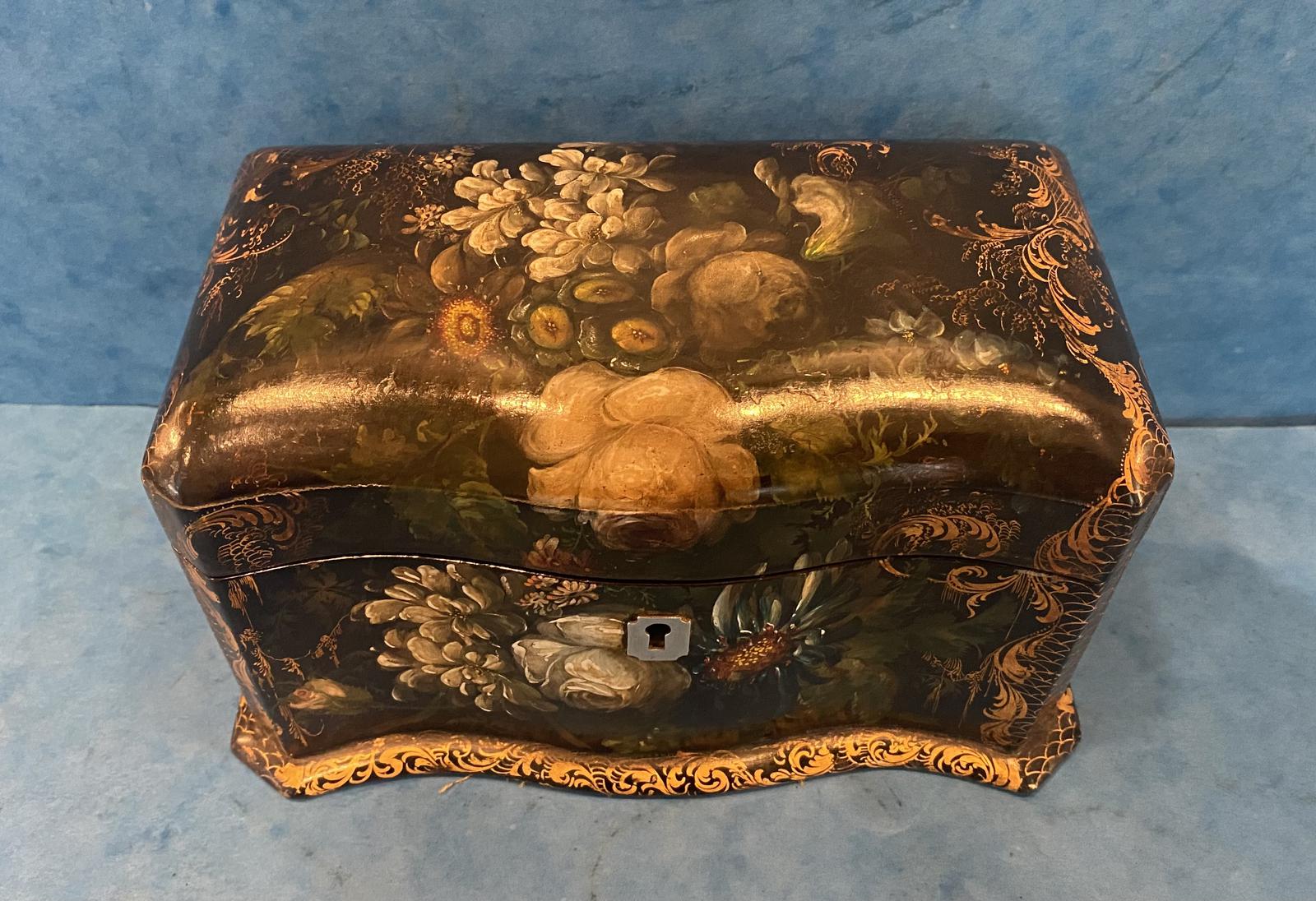 Early Victorian Painted Papier-mâché Twin Lidded Tea Caddy