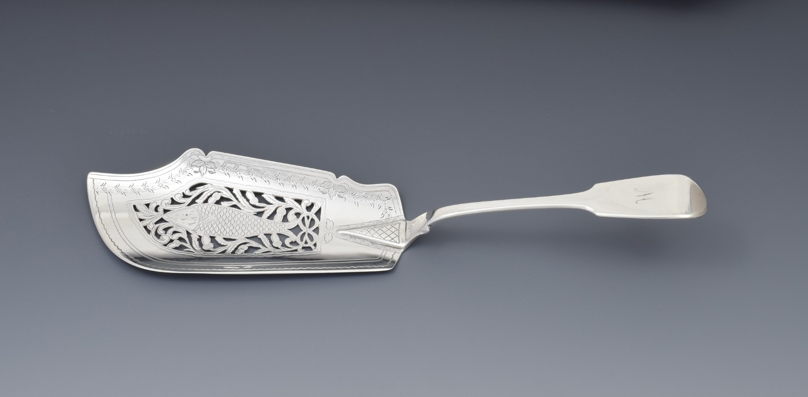 Early Victorian Pierced Silver Fish Server Slice 1840