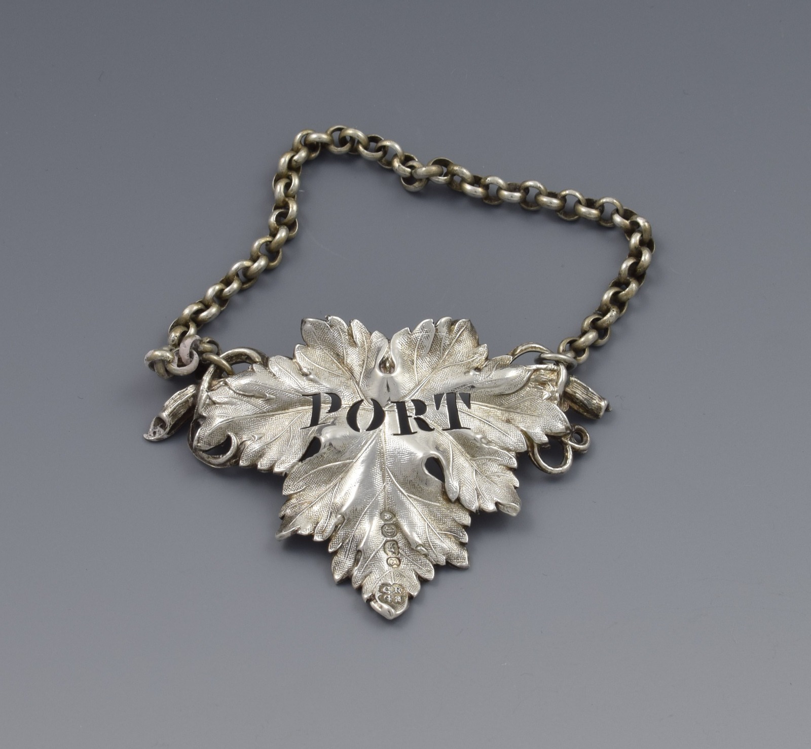 Early Victorian Silver Vine Leaf Port Decanter Label 1838