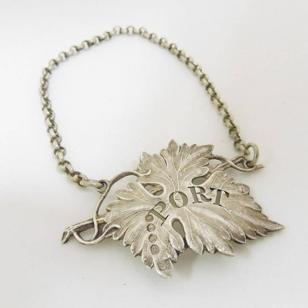 Early Victorian Silver Vine Leaf Port Decanter Label 1844