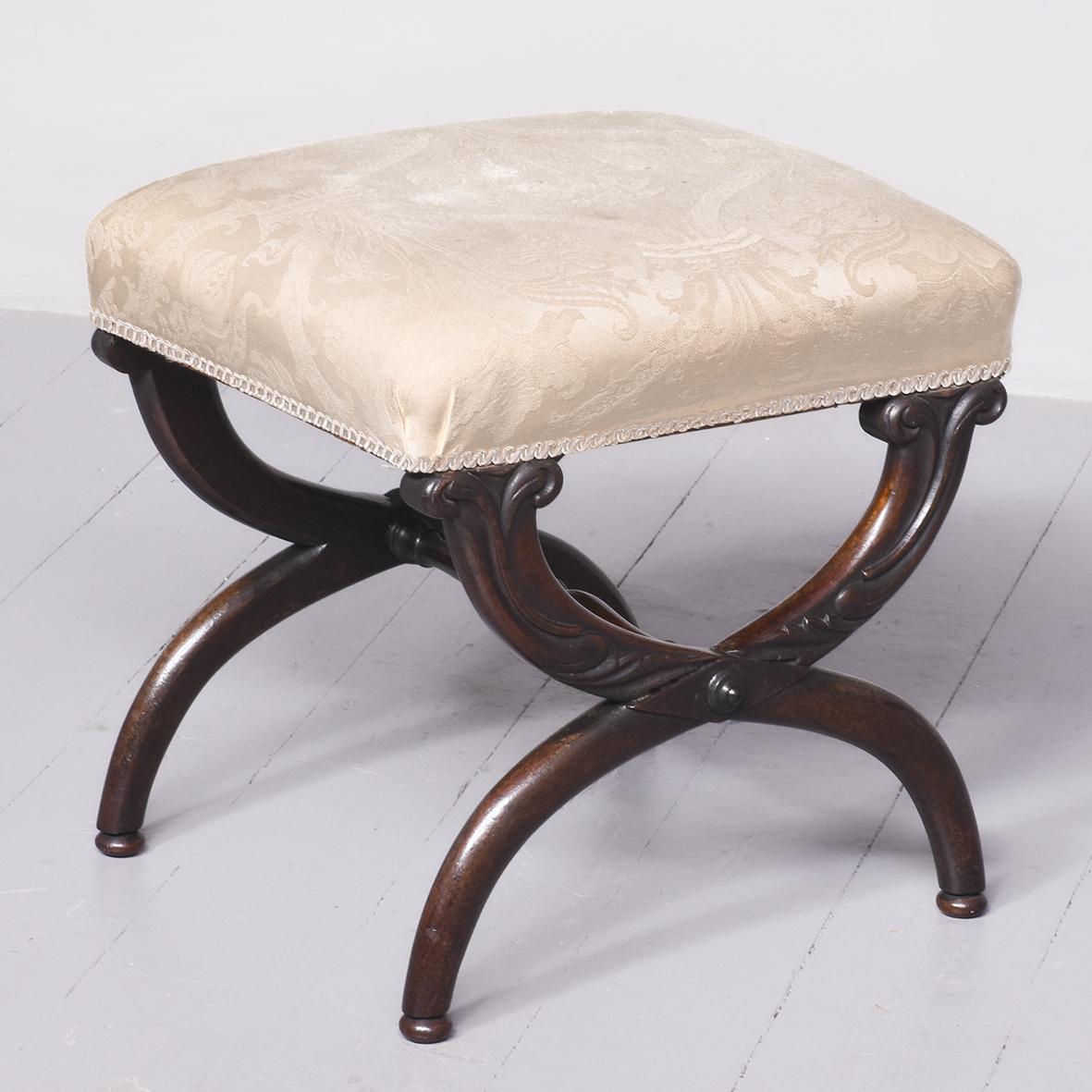 Early Victorian X Framed Mahogany Upholstered Stool (1 of 5)