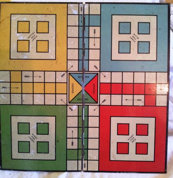 Early Vintage Burnett Tin Plate Ludo Game Board