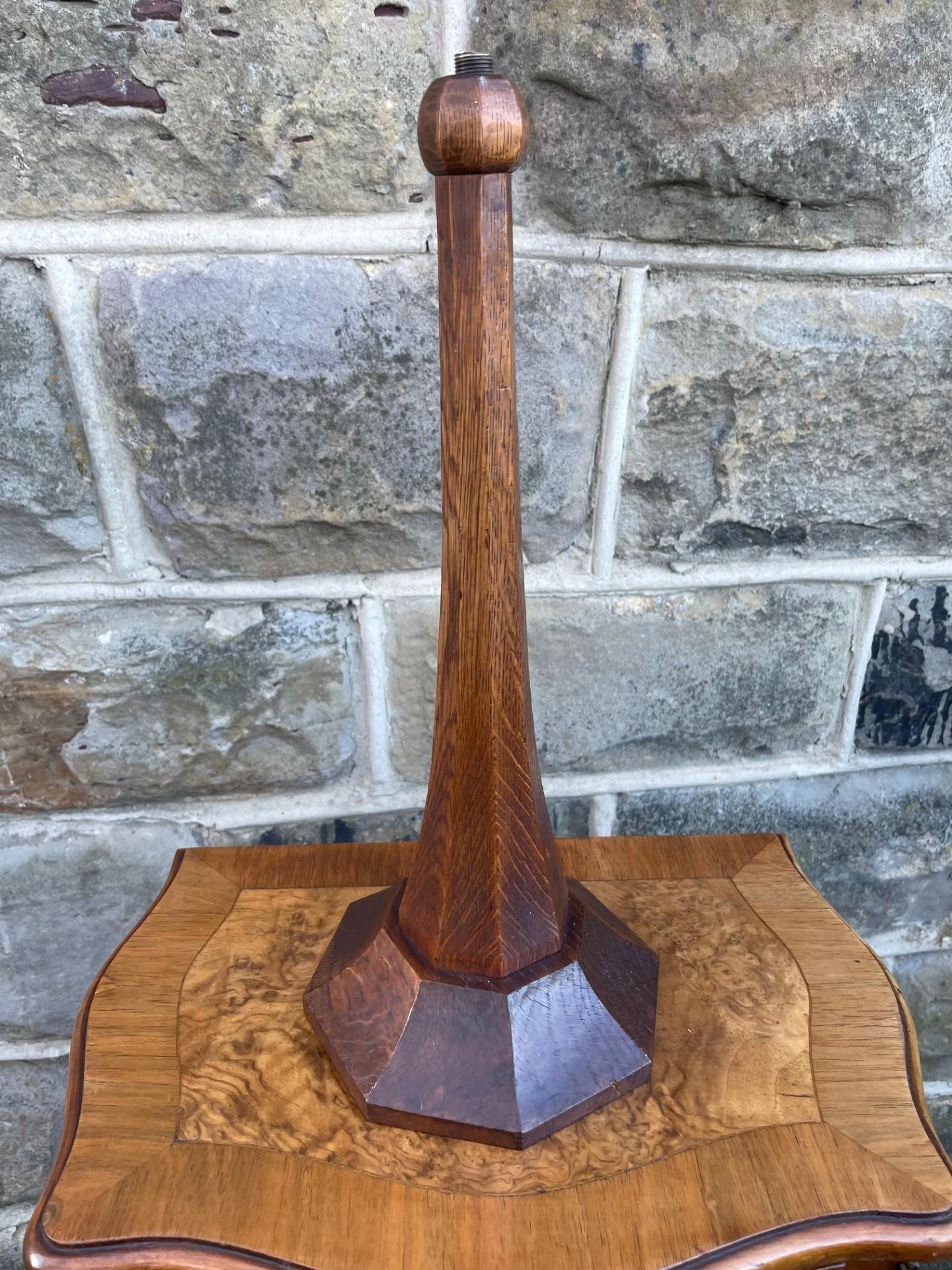 Offers for sale is this Yorkshire adzed oak table lamp.... Workshop of Robert Mouseman Thompson. Early example & a lovely rich colour & patina. Solid oak having the adzed finish.