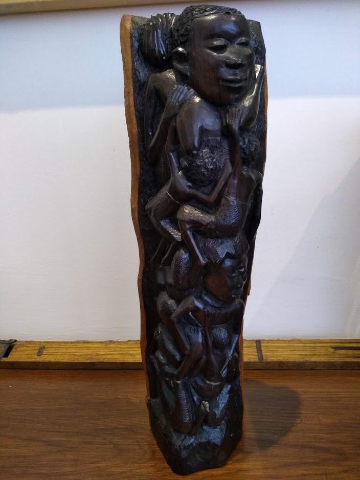 East African Makombi Tribe Family Tree Carving with Tree Bark Back