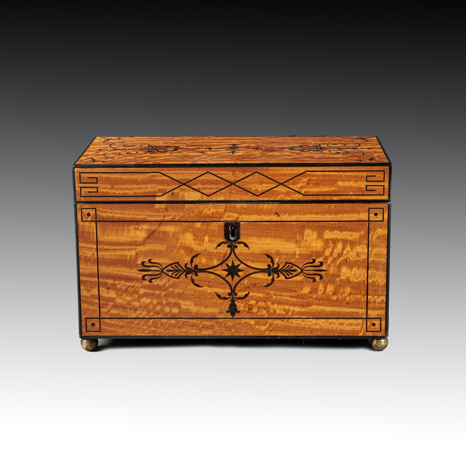 East Indian Satinwood & Ebony Inlaid Tea Caddy c.1810 (1 of 10)