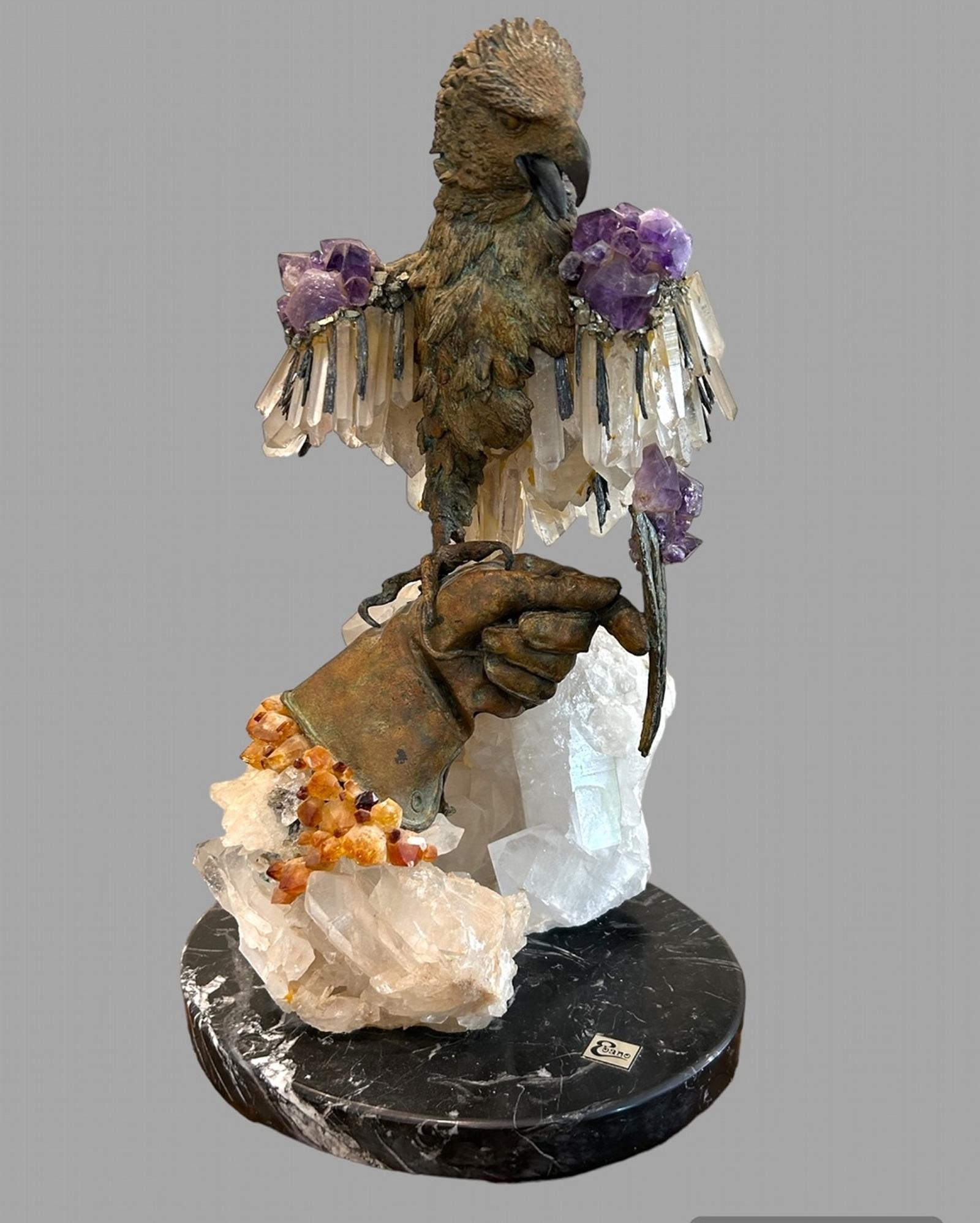 Ebano Vidal Eagle Bronze Sculpture with Crystals / Gemstones