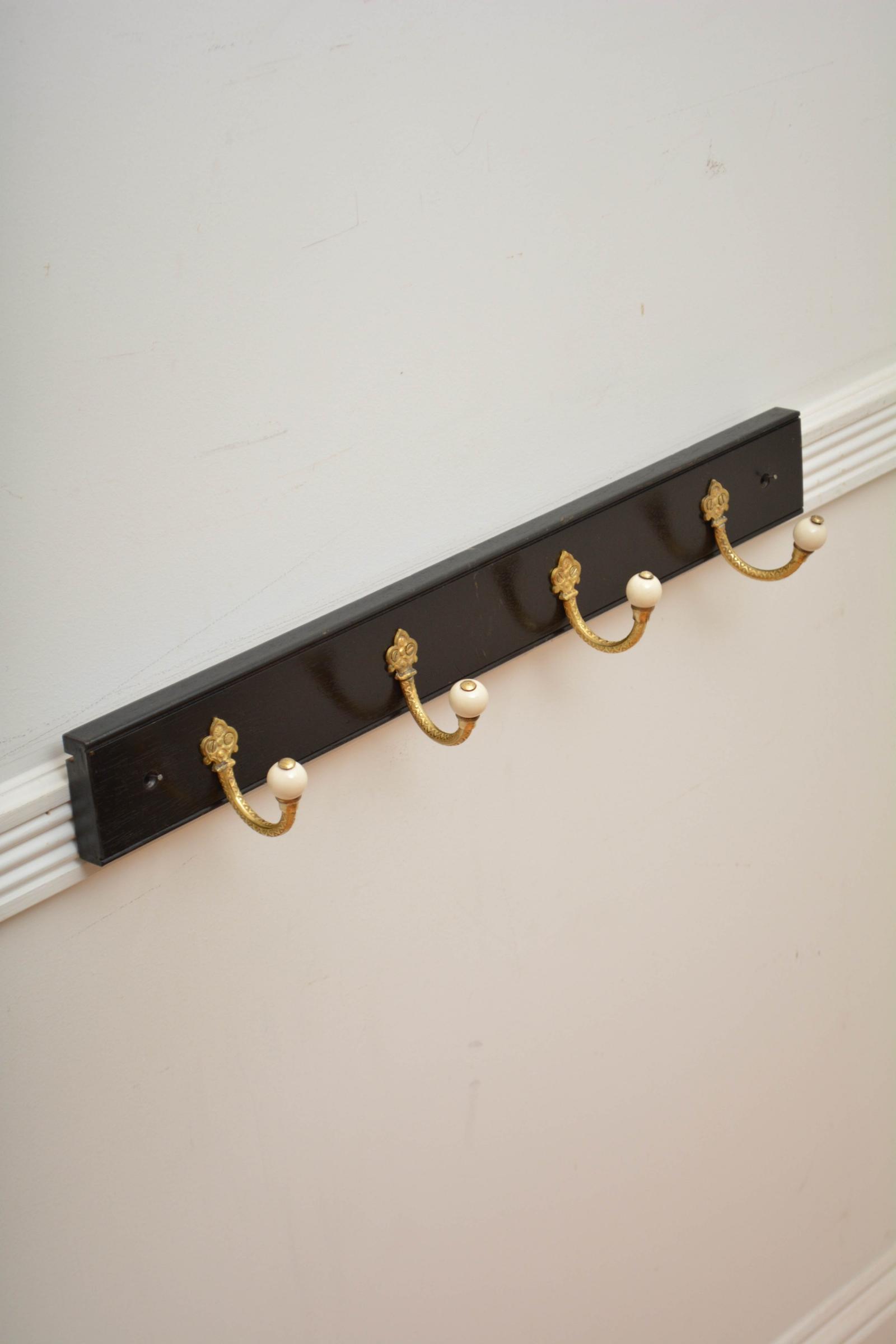Ebonised Brass & Ceramic Coat Rack Coat Hooks