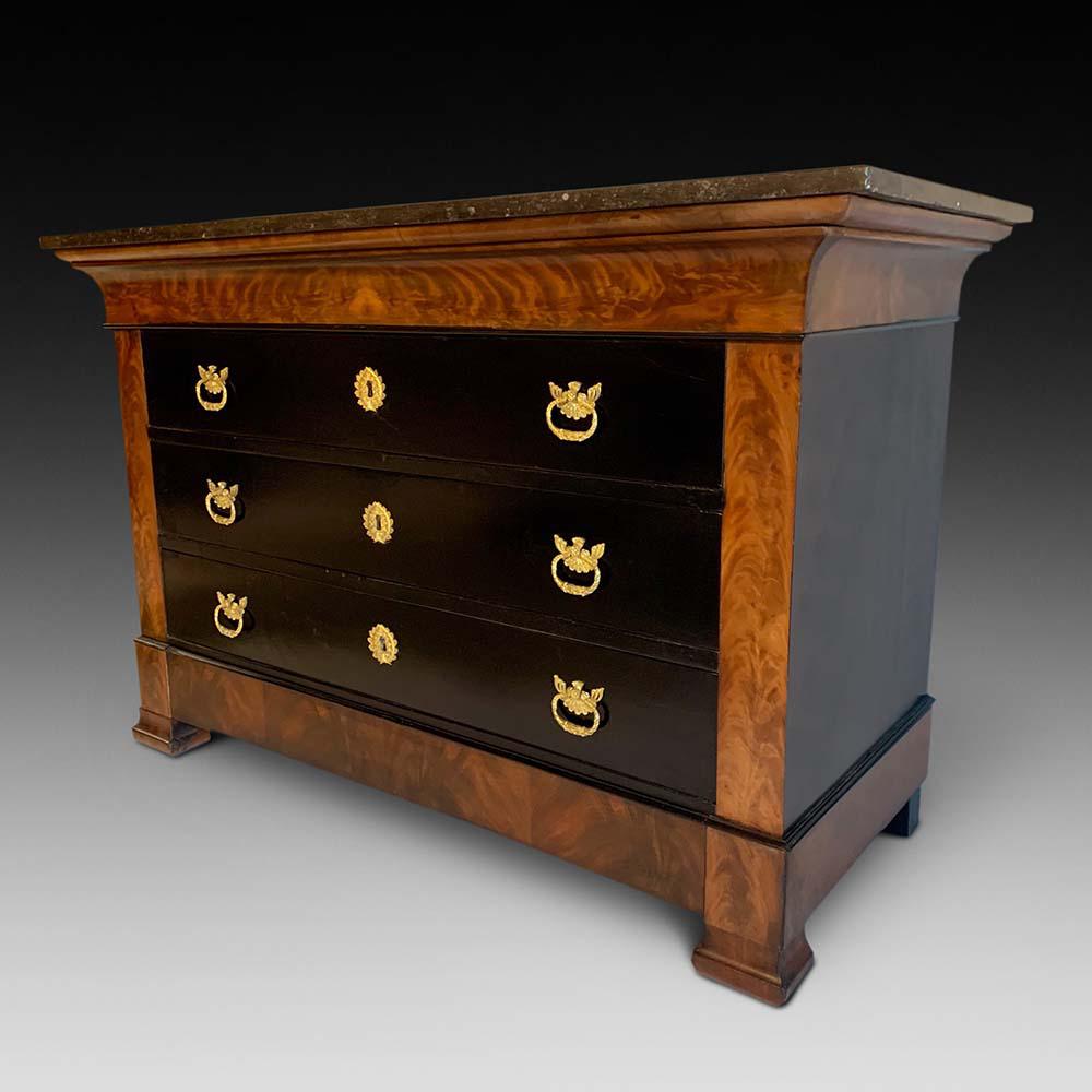 Ebonised & Flame Mahogany Commode Chest of Drawers, ca. 1840-60