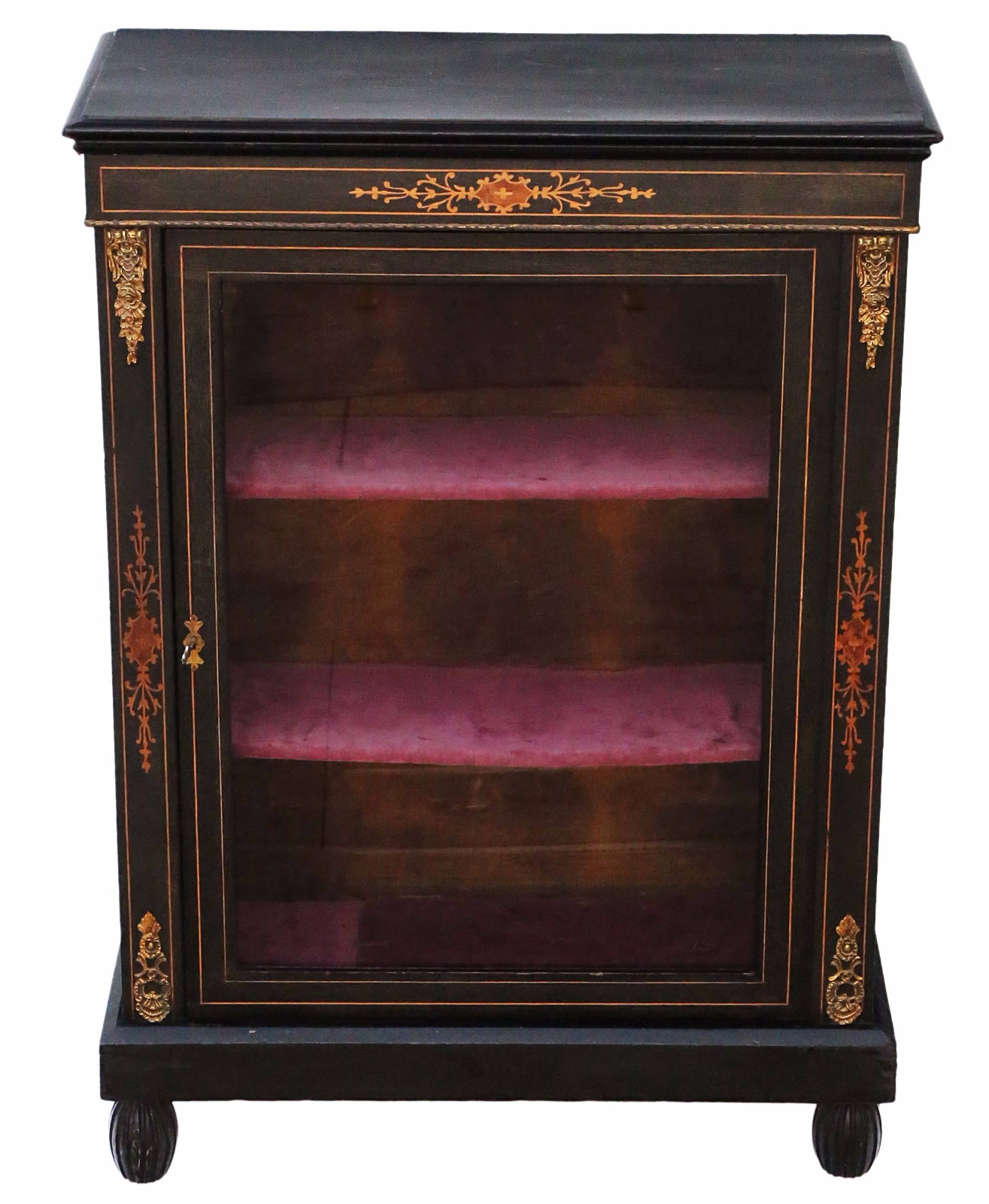 Ebonised Pier Display Cabinet Marquetry Inlays C.1890