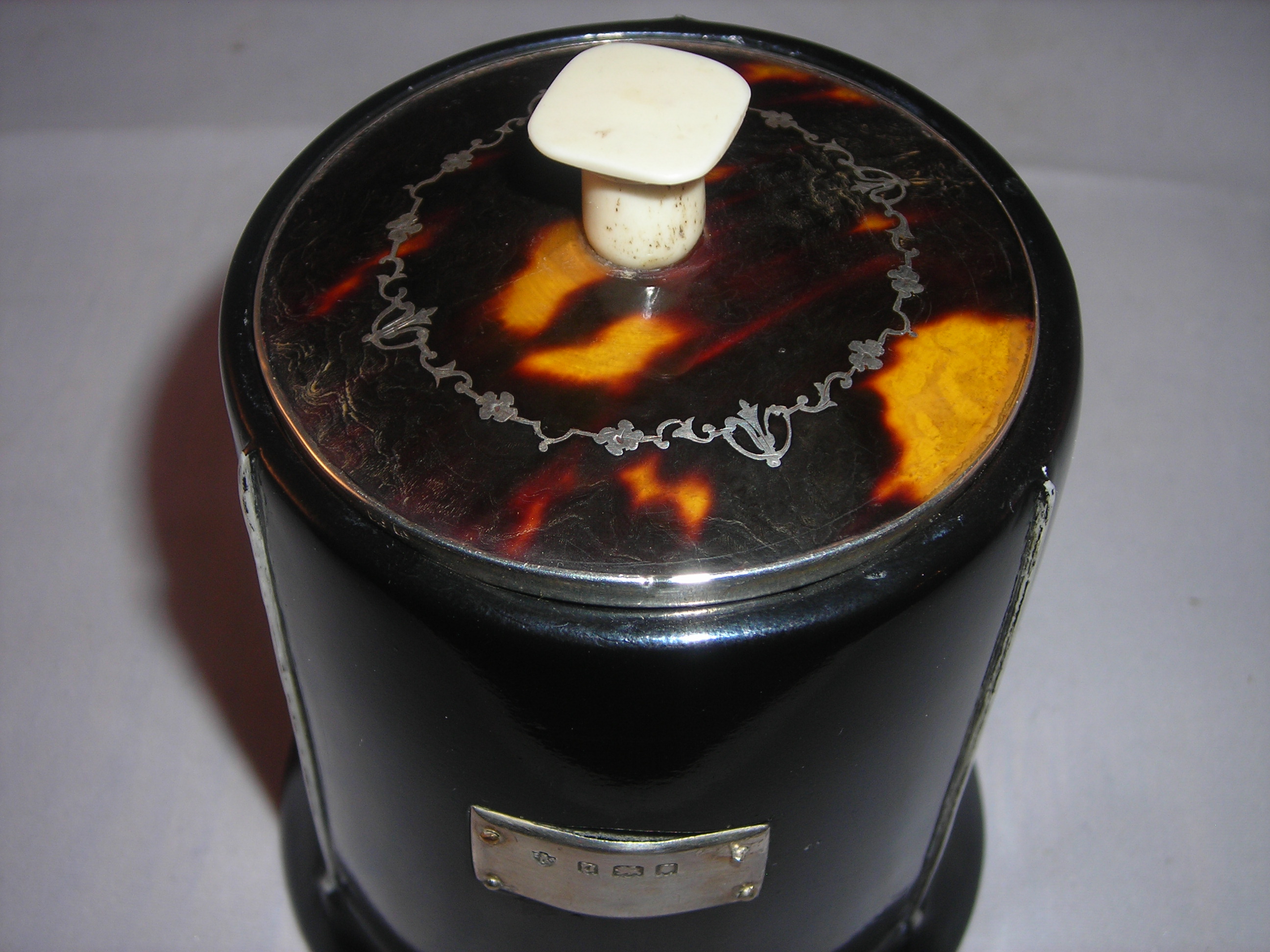 Ebonised Teacaddy with Tortoiseshell Inlaid Lid 1919