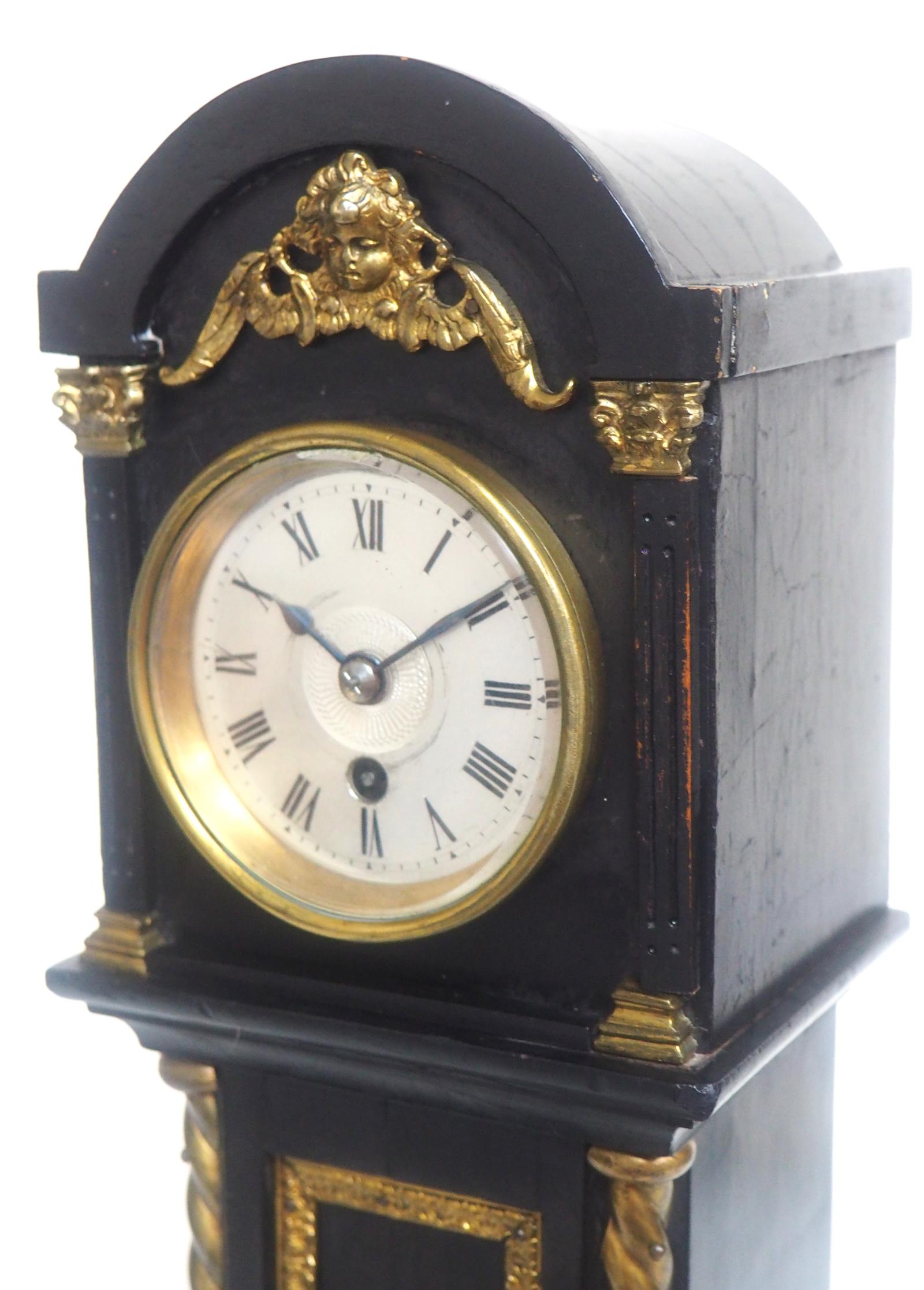 Ebony & Ormolu Antique 8 Day Miniature Longcase Grandfather Mantle Clock (1 of 13)