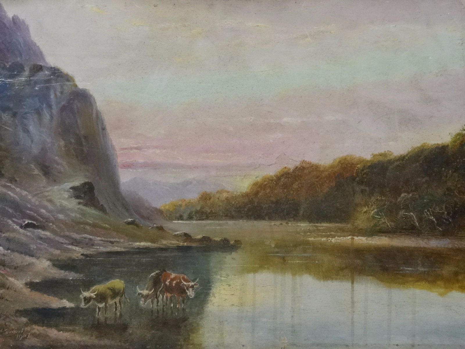 'Ed Evans' 1907 Edwardian Antique Highland Cattle Oil Painting 'unframed' (1of2)