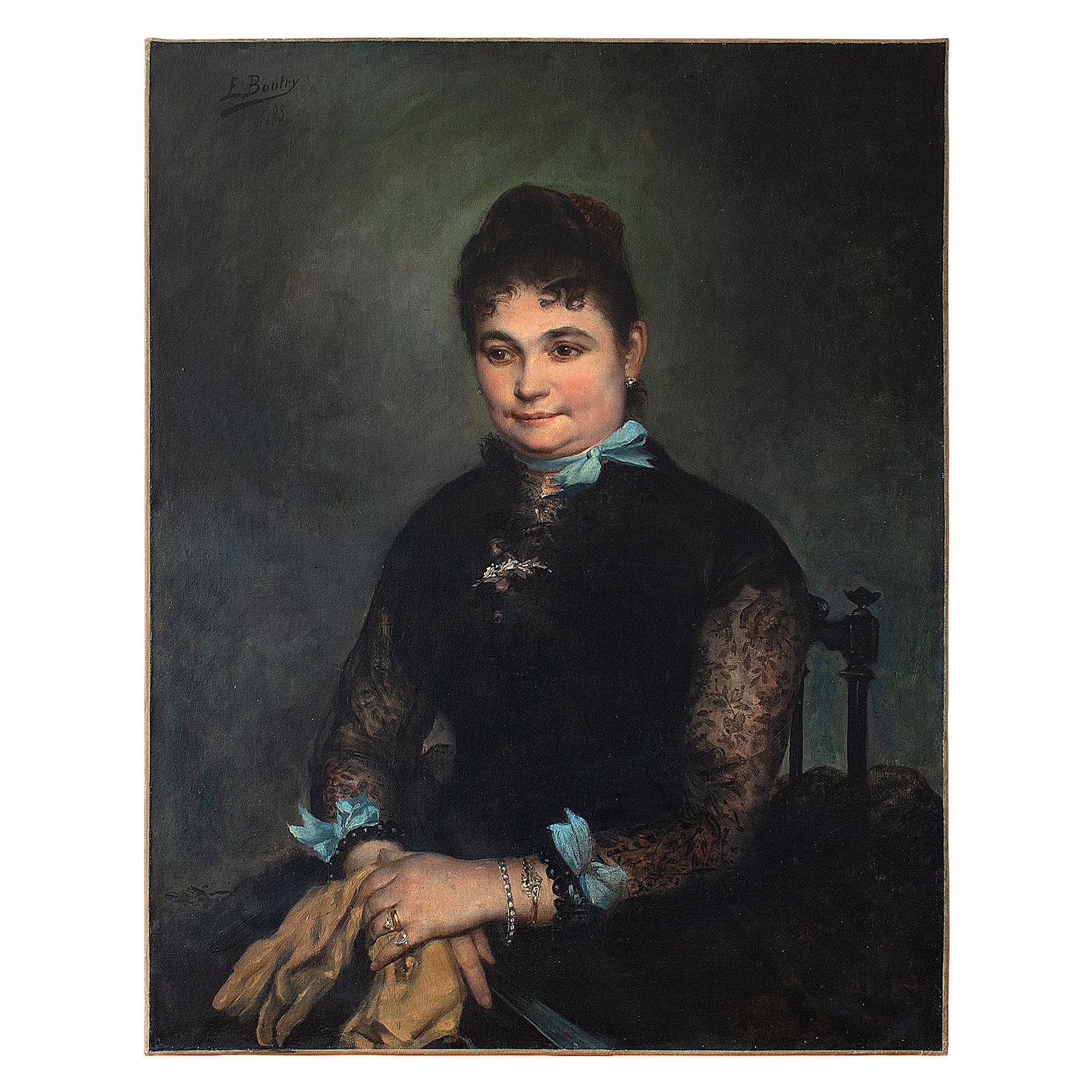 Edgar Boutry, Portrait Of A Lady With Blue Ribbons, Oil Painting