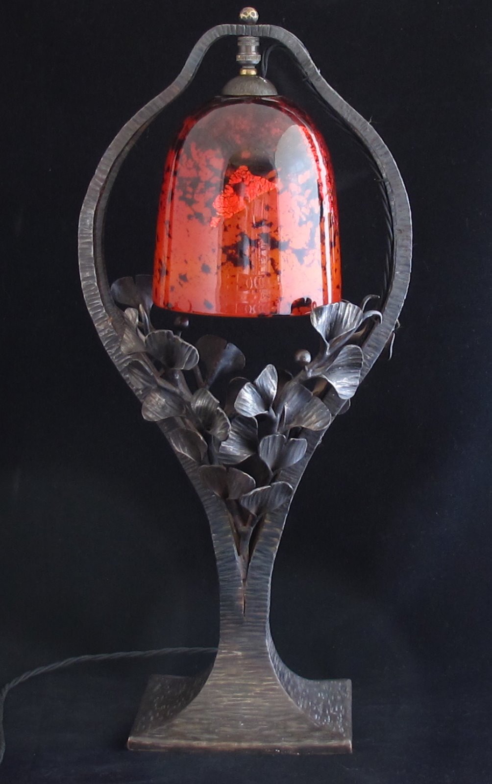 Edgar Brandt Art Deco Lamp with Original Daum Glass Shade c.1925