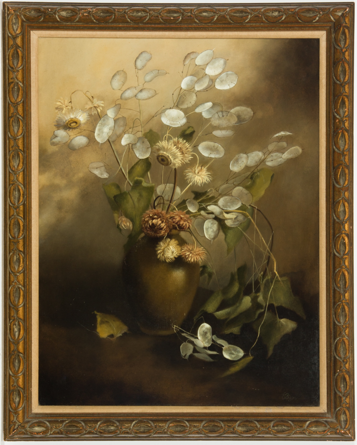Edny Bizon - English 20th Century Oil, Still Life with Dried Flowers