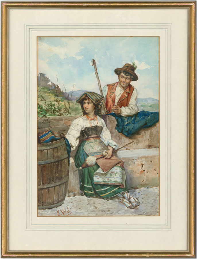 Eduard Vitali - Signed & Framed Late 19th Century Watercolour, Italian Figures