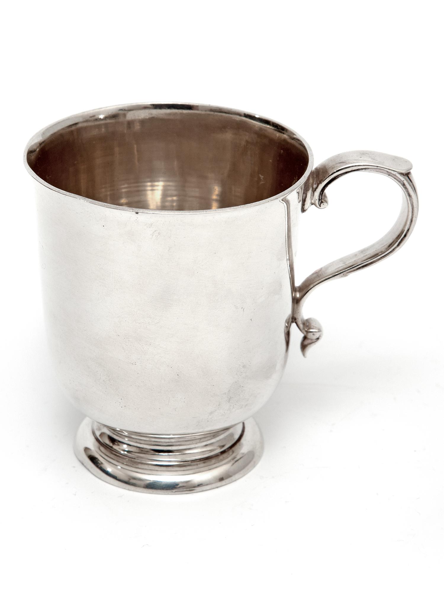 Edward Barnard Silver Christening Mug with a Plain Body and Cast Scroll Handle