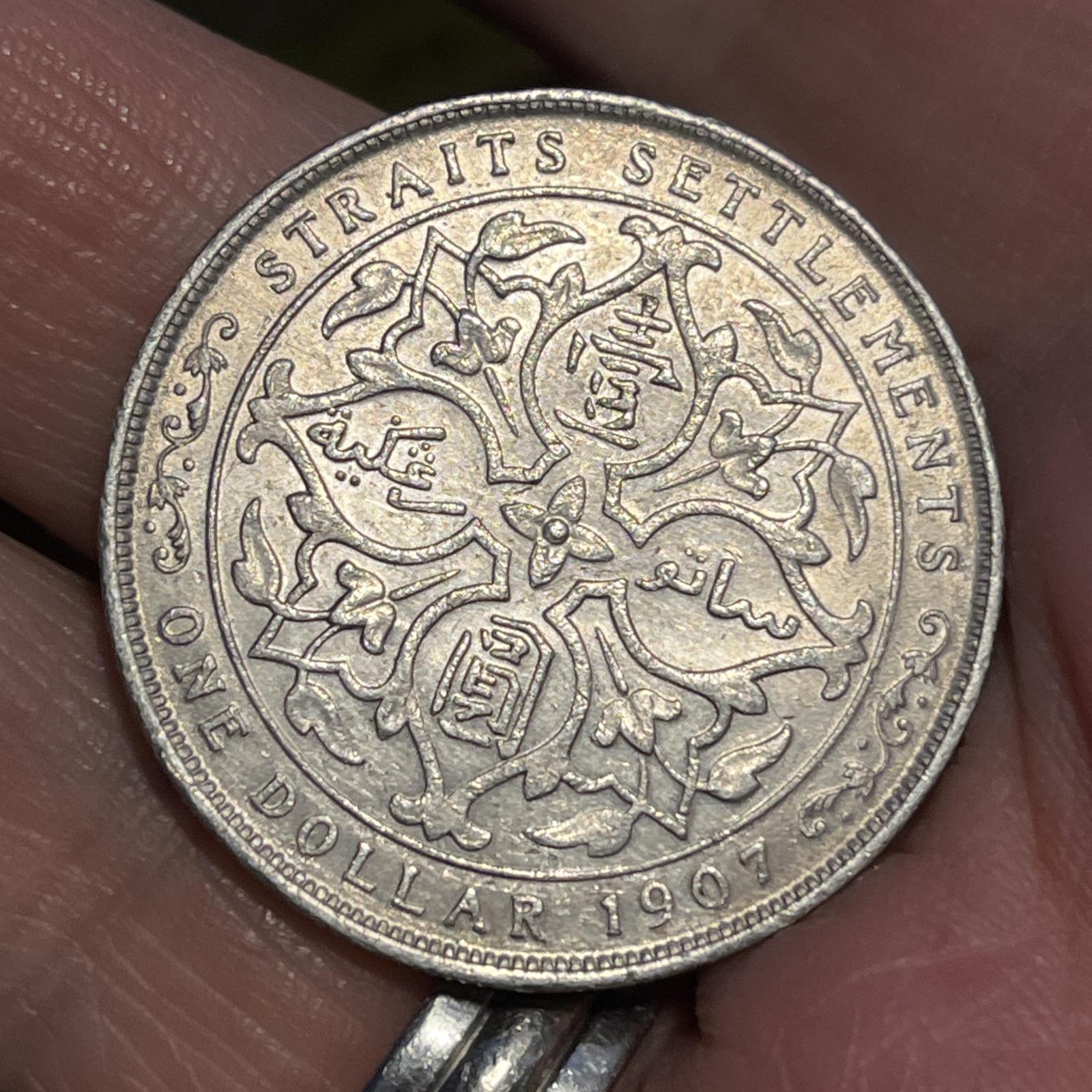 A silver dollar from the reign of king Edward VII dated 1907 from the Straights Settlements - formerly a group of British territories located in southeast Asia.