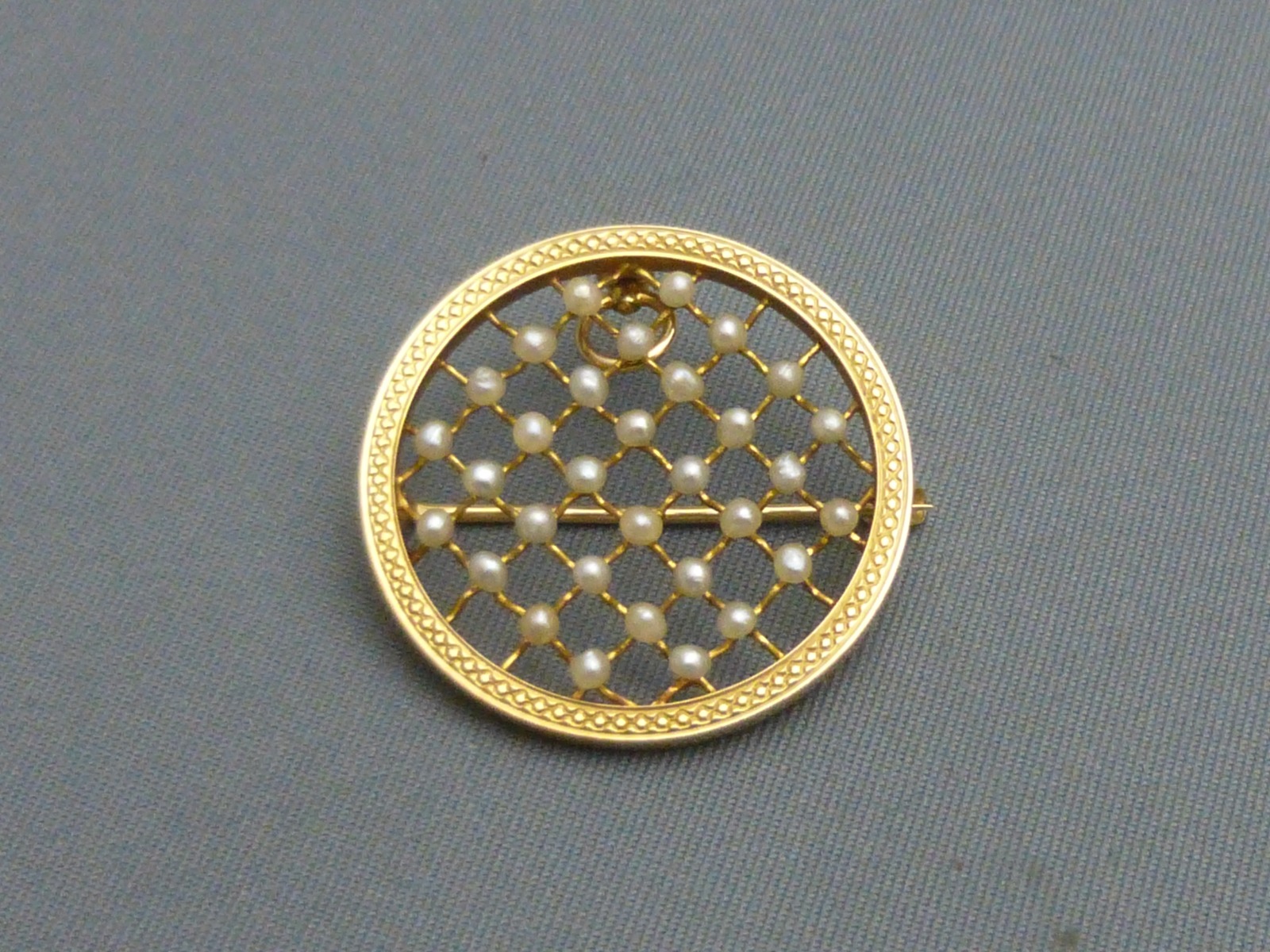Edwardian 14ct Gold & Seed Pearl Brooch / Pendant
