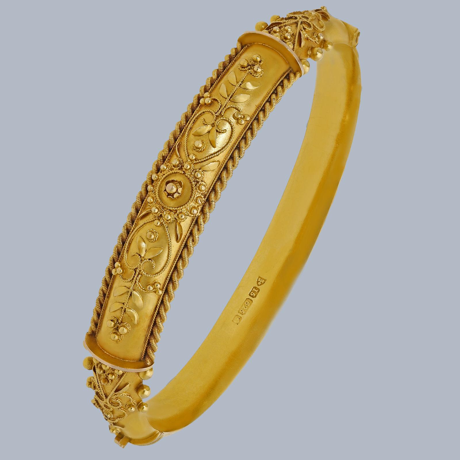 Edwardian 15ct Gold Foliate Bangle Antique Bracelet Chester 1907 Ornate Bangle