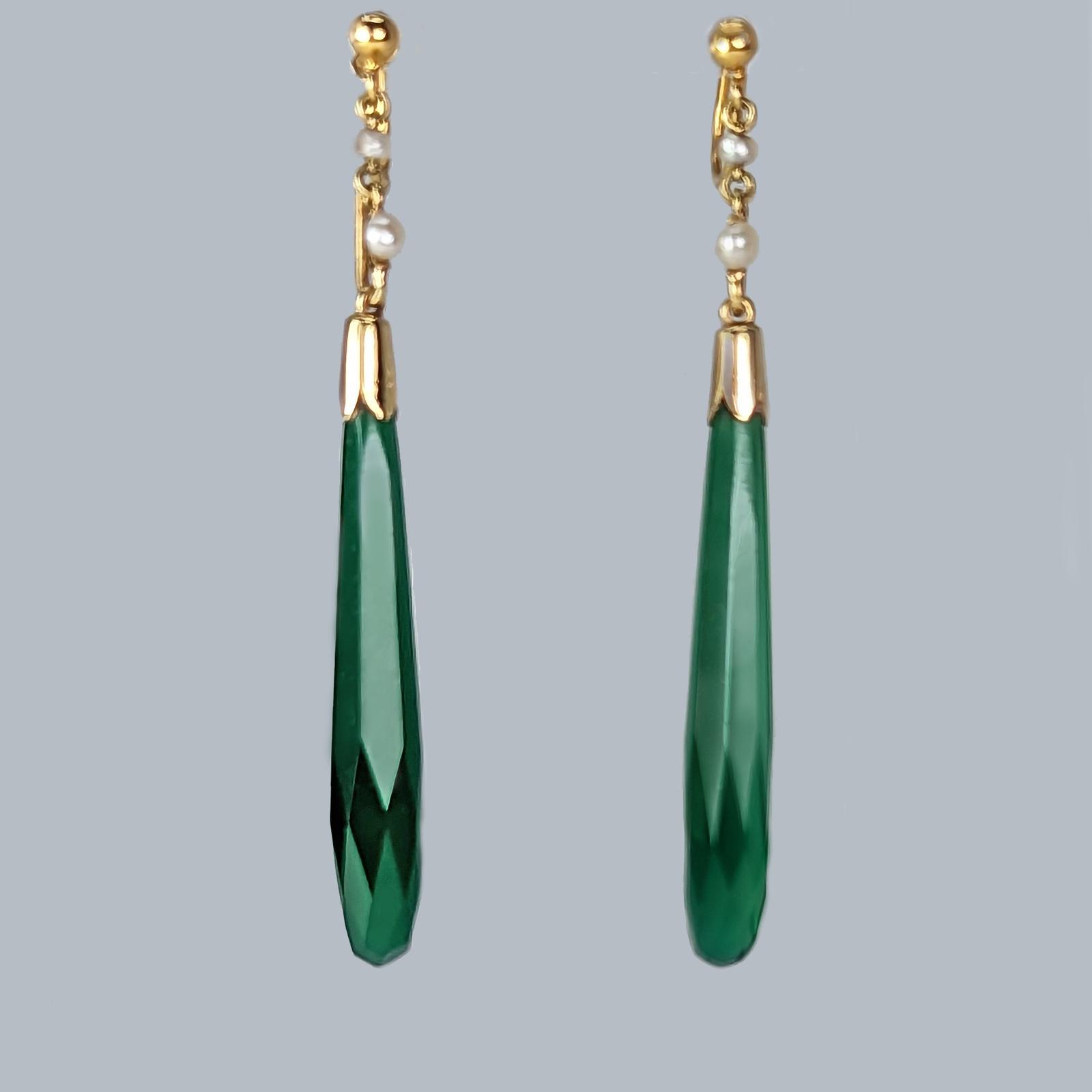 Edwardian 15ct Gold Pearl and Green Quartz Drop Earrings Antique Teardrop Dangle (1 of 5)