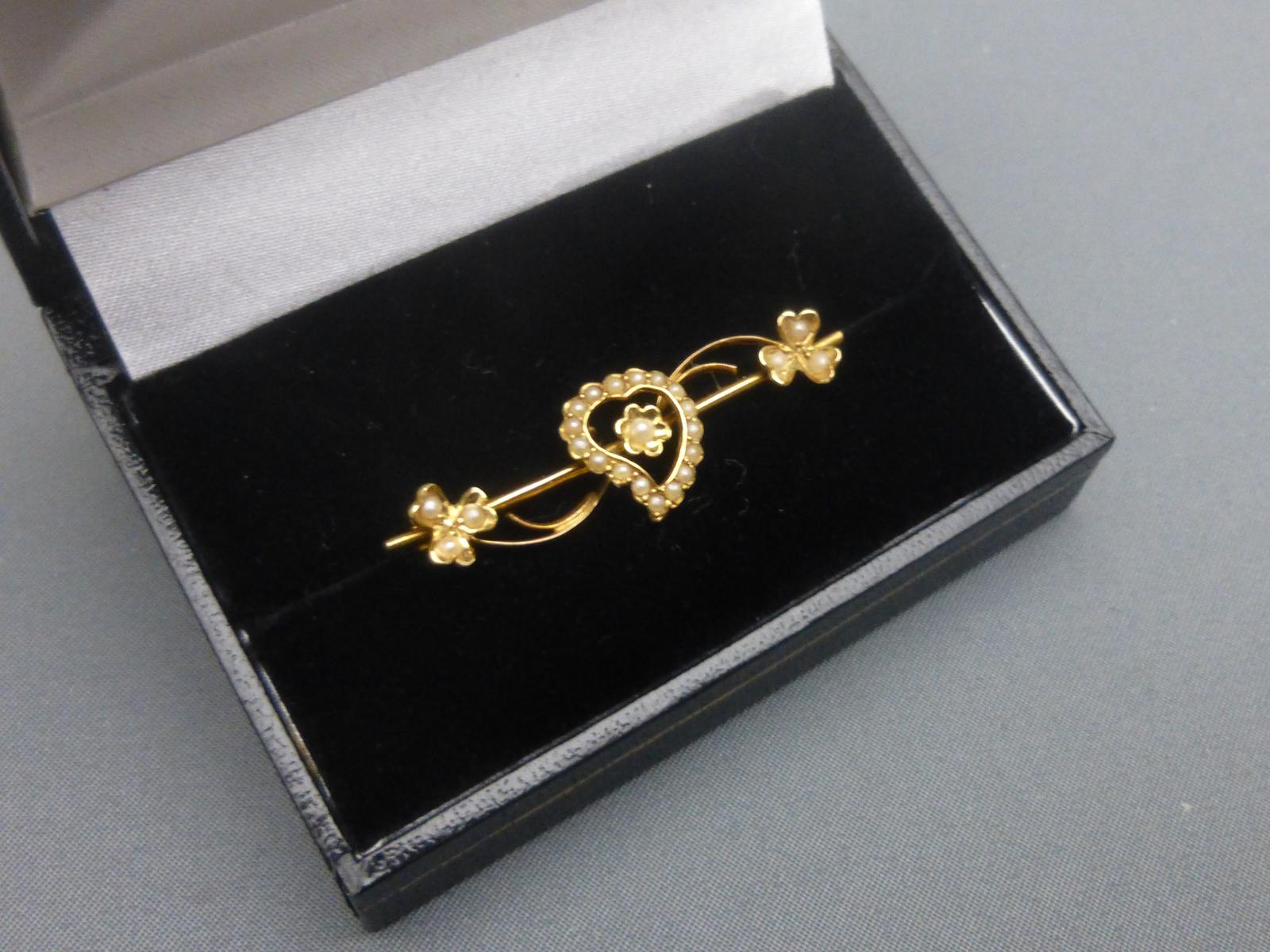 Edwardian 15ct Gold & Pearl Heart Brooch