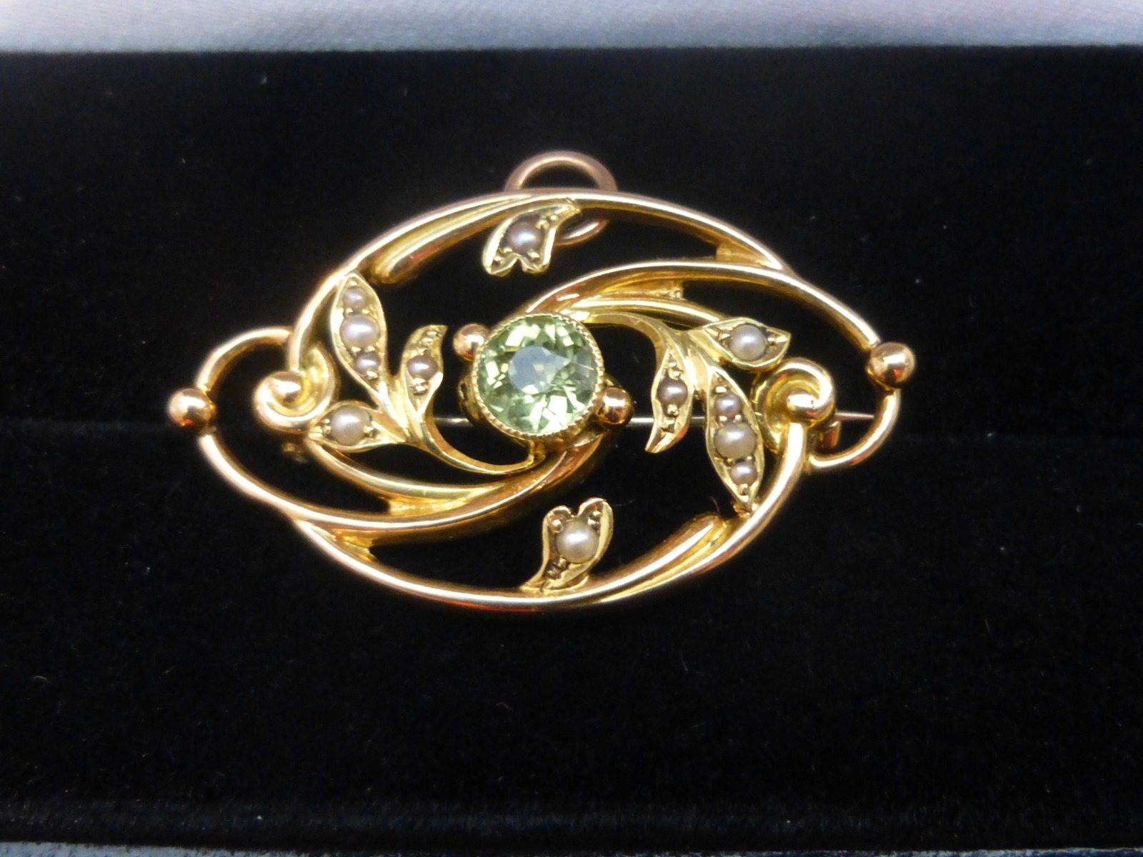 Edwardian 15ct Gold, Peridot & Pearl Brooch