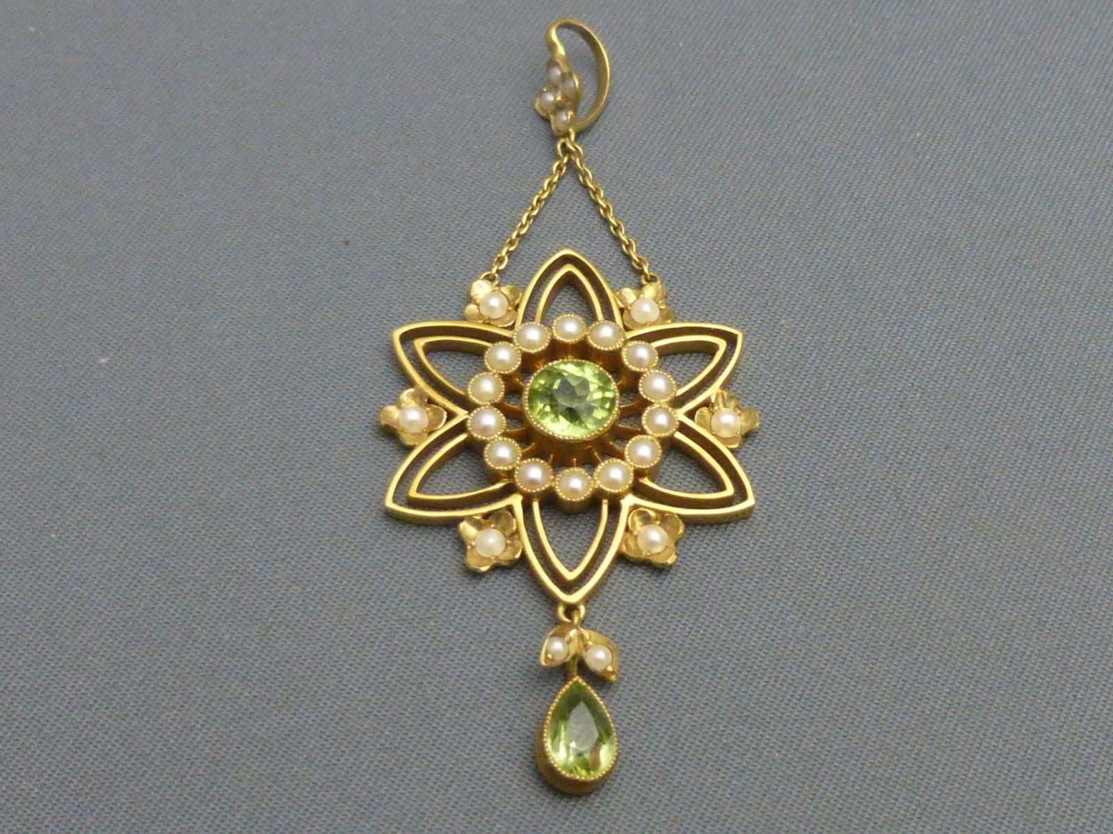 Edwardian, 15ct Gold Peridot & Pearl Pendant