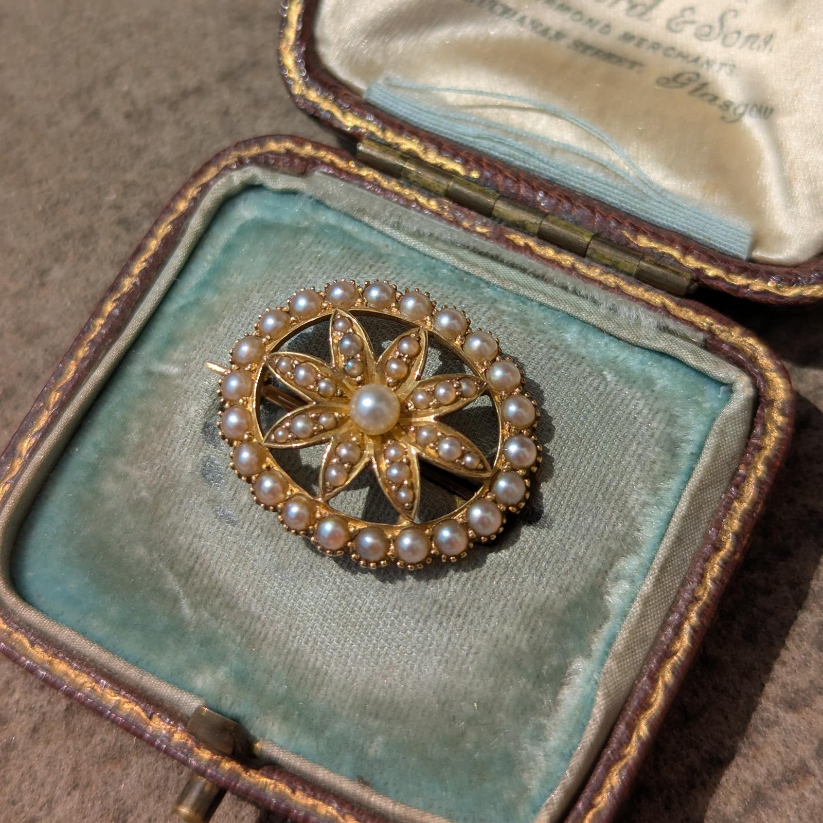 Edwardian 15ct Gold Seed Pearl Daisy Brooch