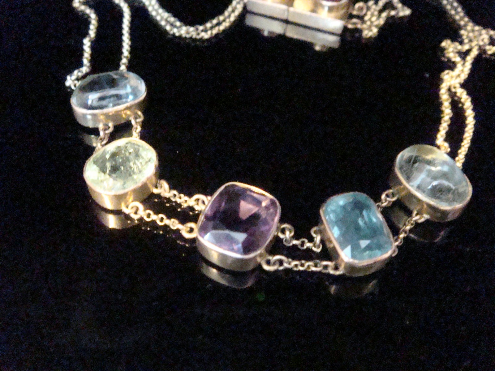 Edwardian 15ct Multi Gem Set Necklace Tourmaline, Topaz, Amethyst etc