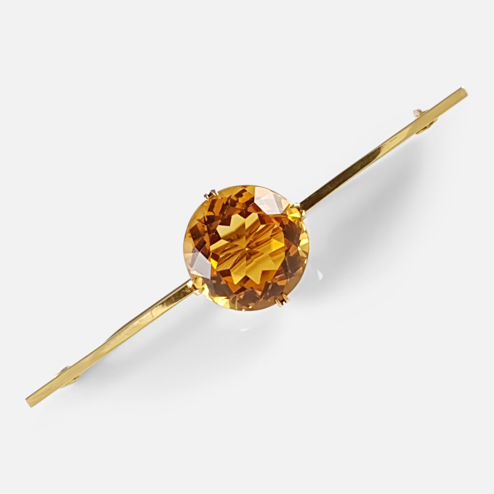 Edwardian 15ct Yellow Gold 17ct Citrine Bar Brooch