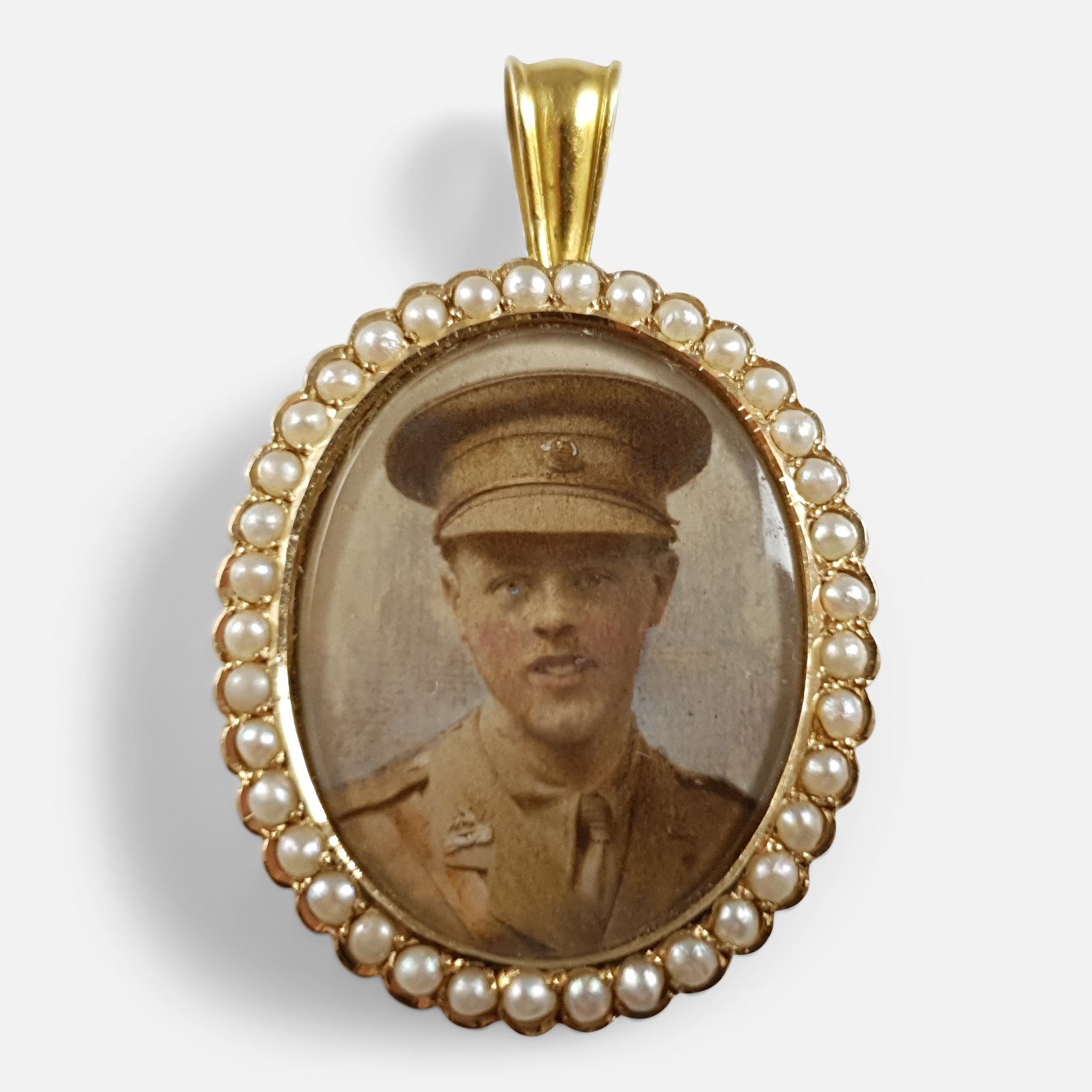 Edwardian 15ct Yellow Gold Seed Pearl Locket Chester 1903