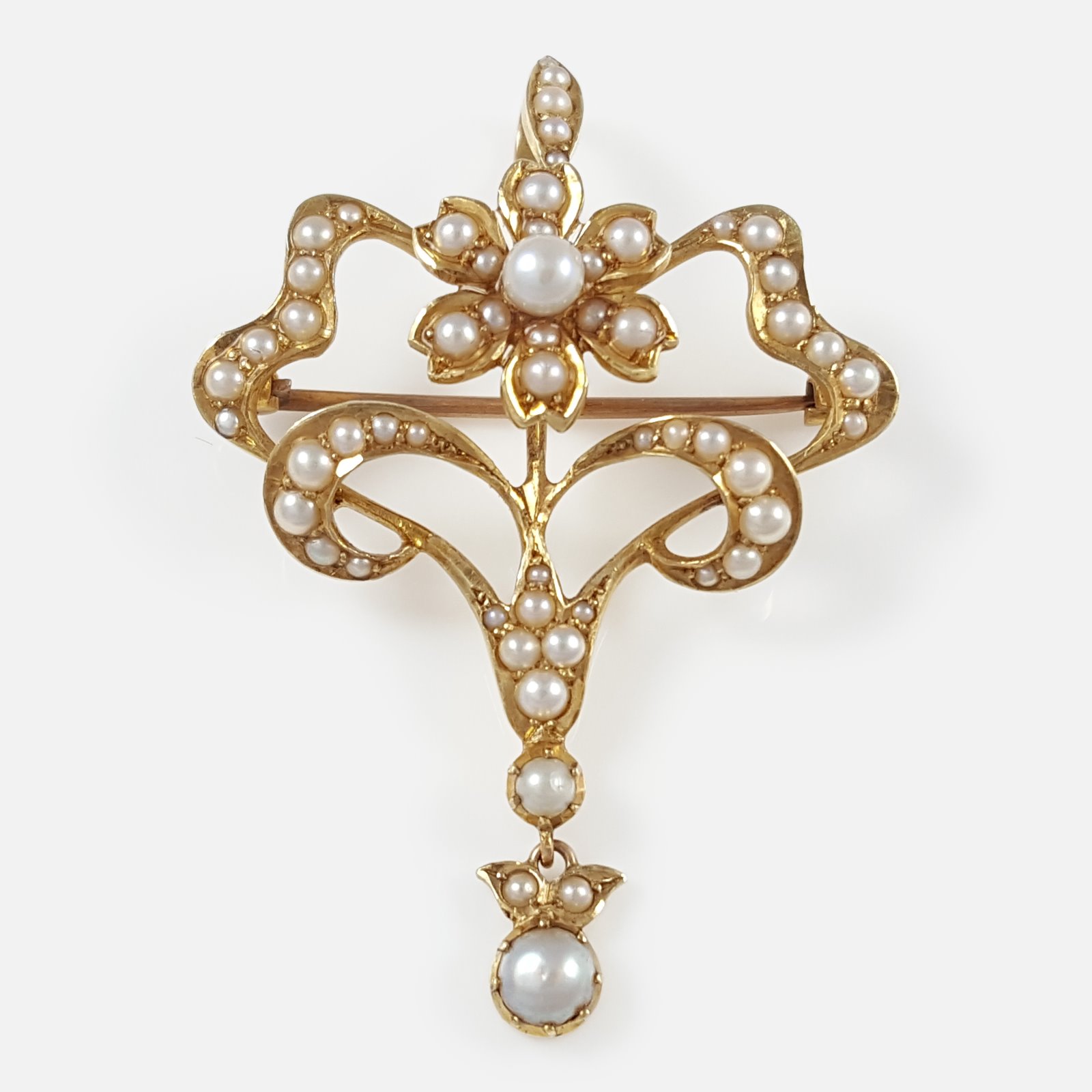 Edwardian 15ct Yellow Gold Seed Pearl Pendant and Brooch