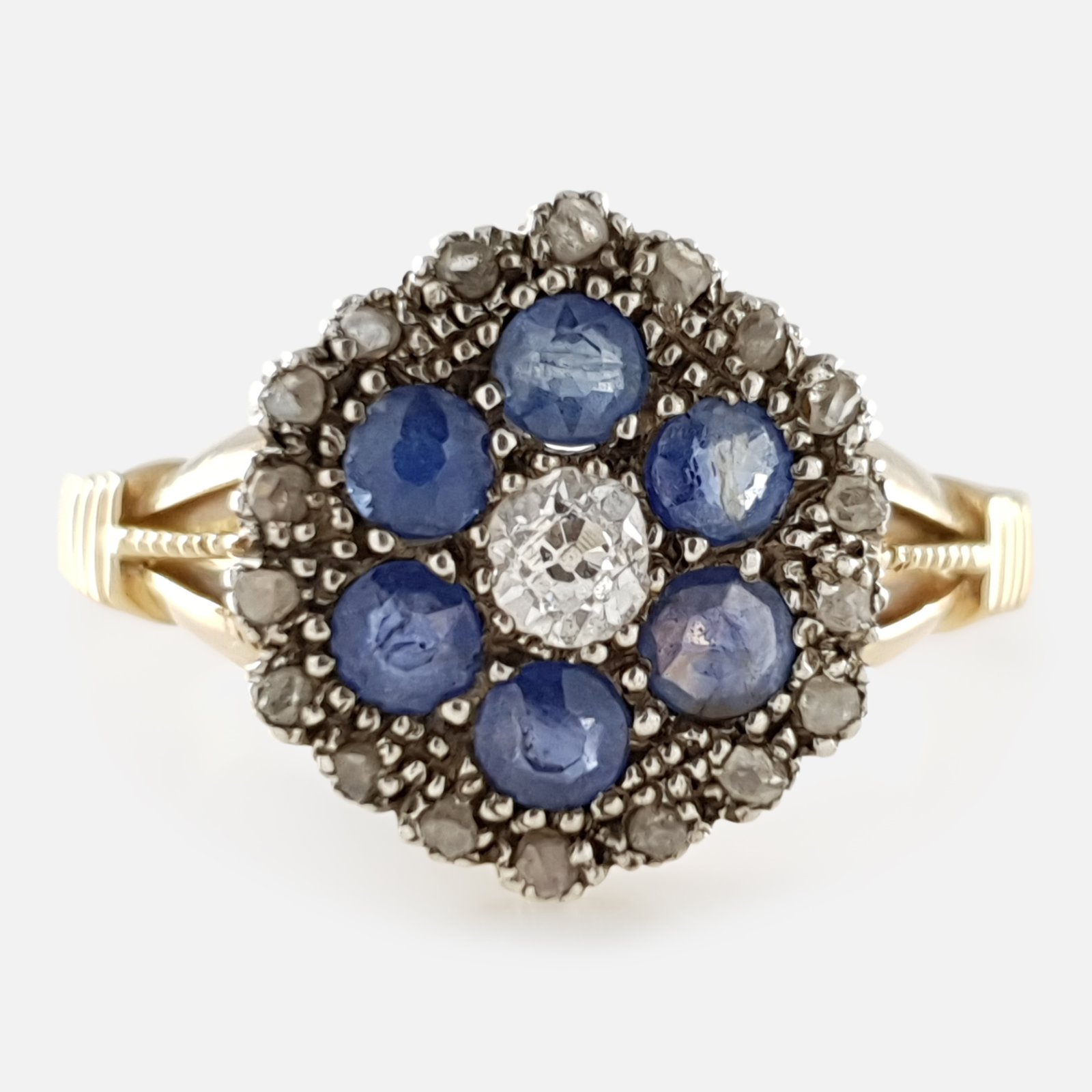 Edwardian 18ct Gold Diamond and Sapphire Cluster Ring